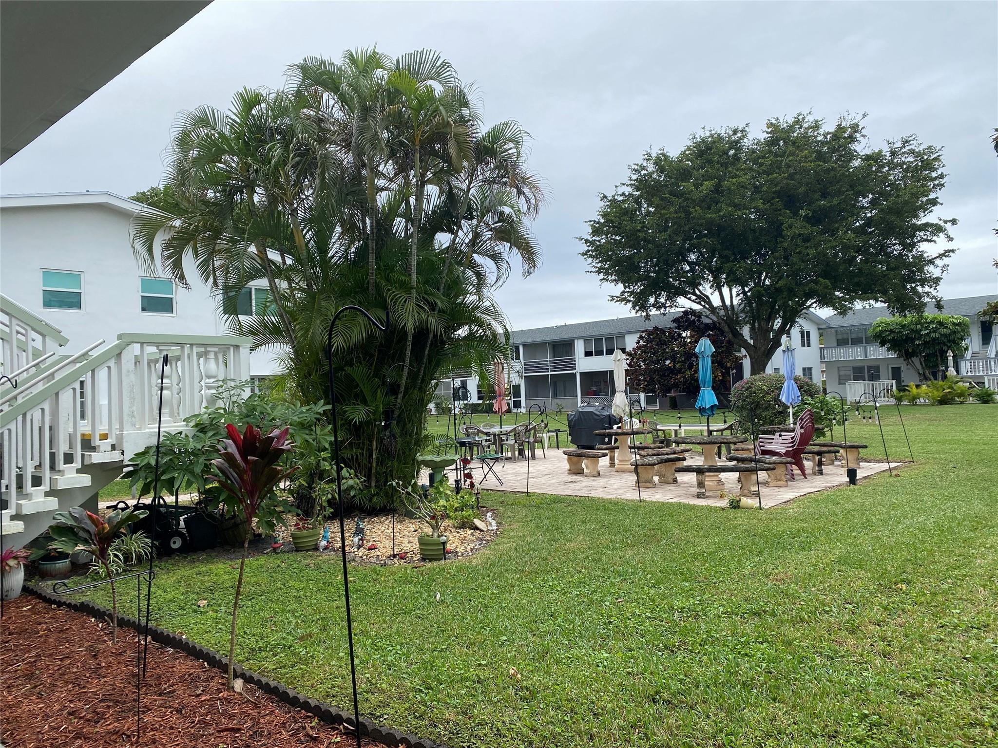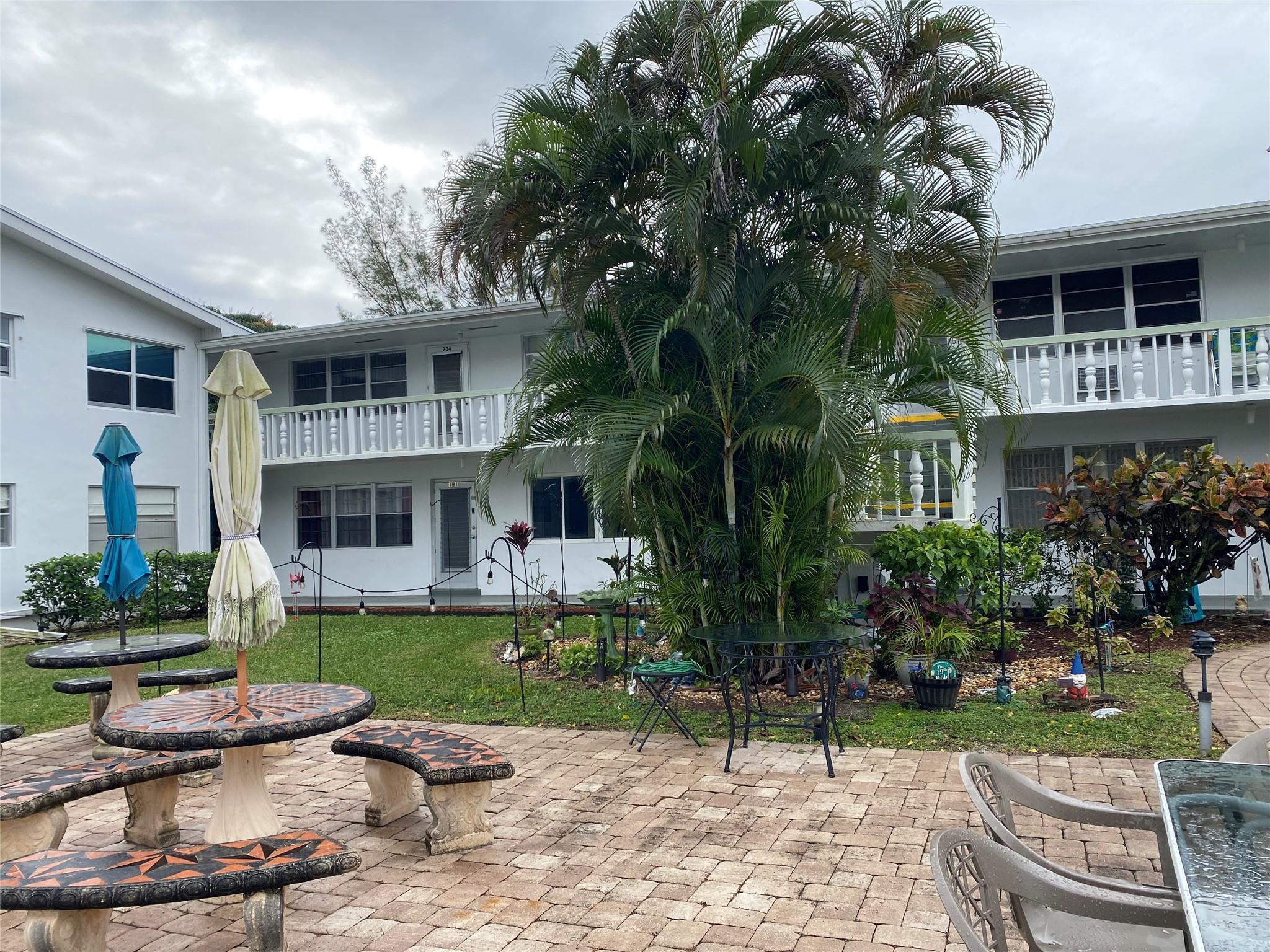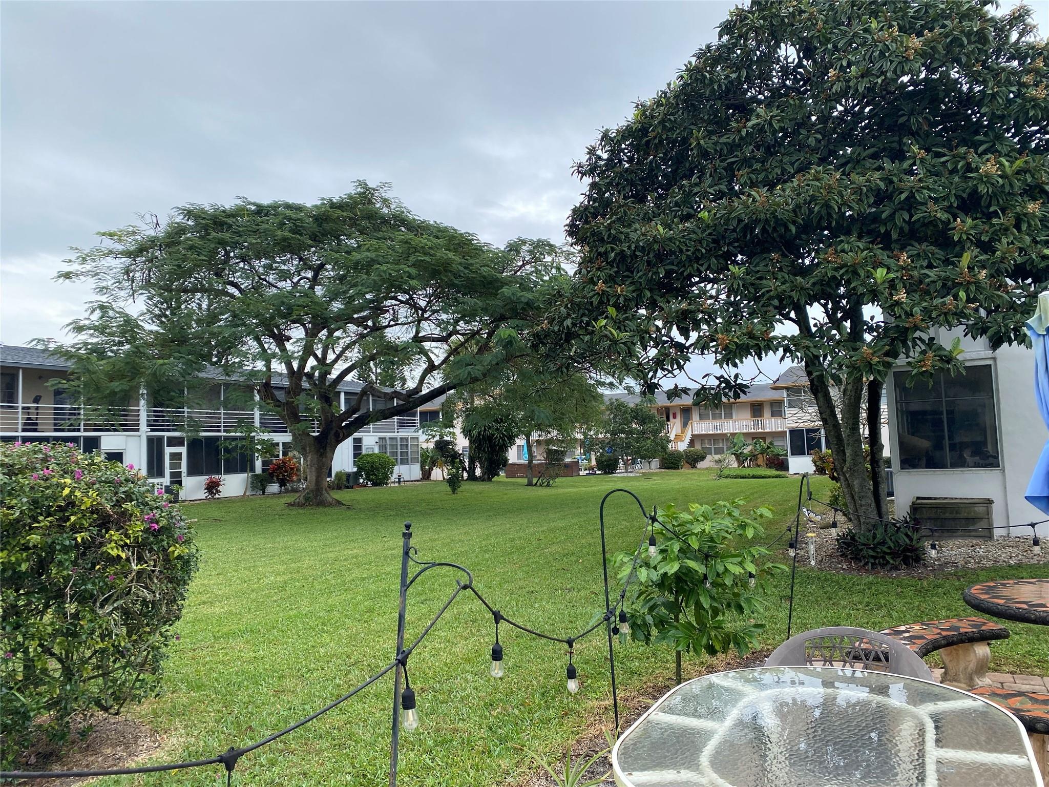 Do not look further! This very well maintained and luminous 1st floor corner unit has been totally renovated. Open and airy floorplan. Nicely furnished. Sold turnkey furnished. Spacious updated kitchen with white cabinets, central island, double sink, plumbing replaced (no copper). Renovated bathroom with tiled walk-in shower and vitreous China Oval pedestal bathroom sink and toilet. Paneled living room and bedroom. Skim textured ceilings flat. Crown molding. Nice tile floors throughout including patio. All windows are clean and in good working condition. Relax on your enclosed back patio offering a tranquil space. Building located in a cul-de-sac. Century Village boasts numerous activites including Fishing, theater, pools, recreation, and bus/shuttles.