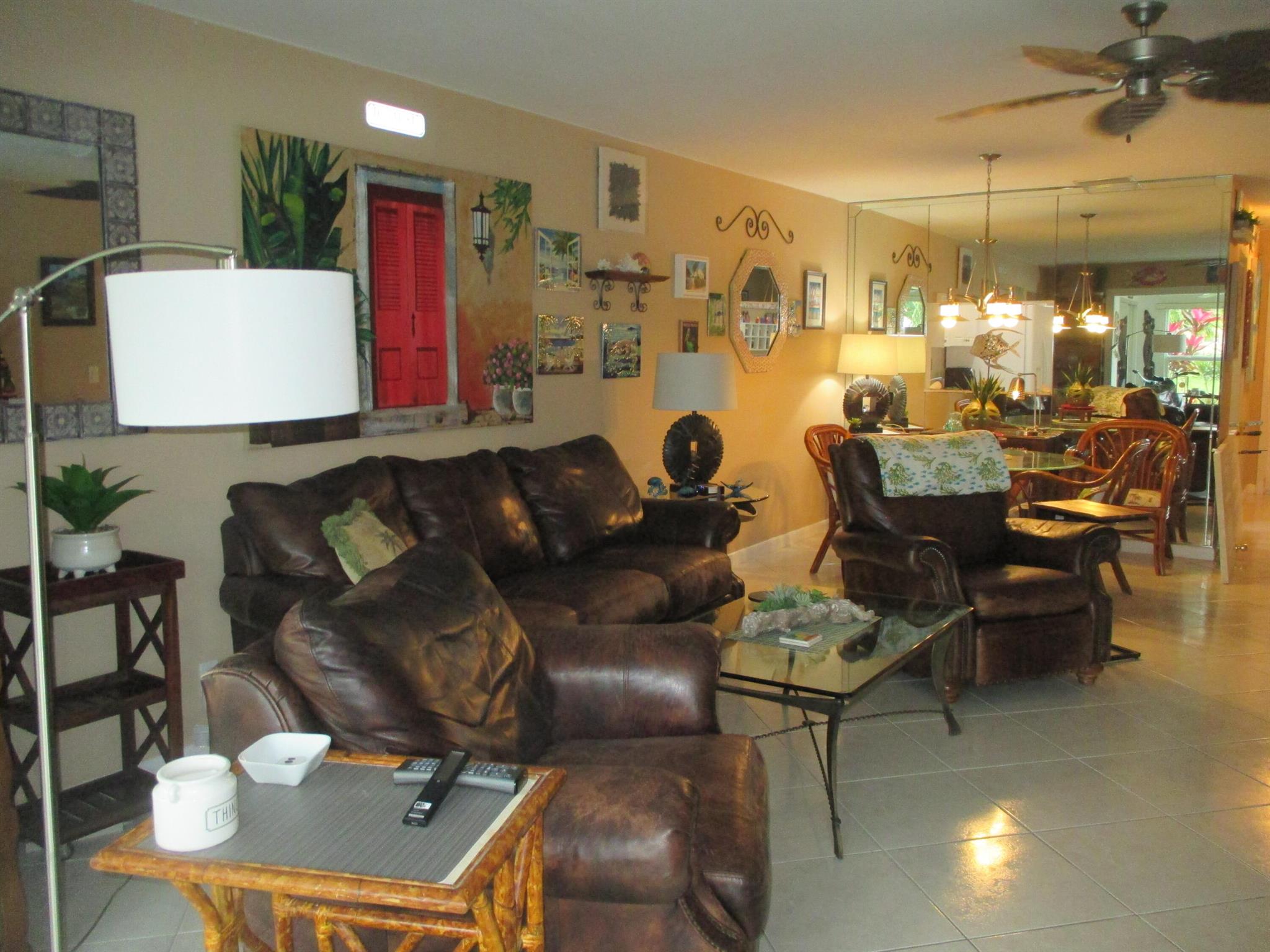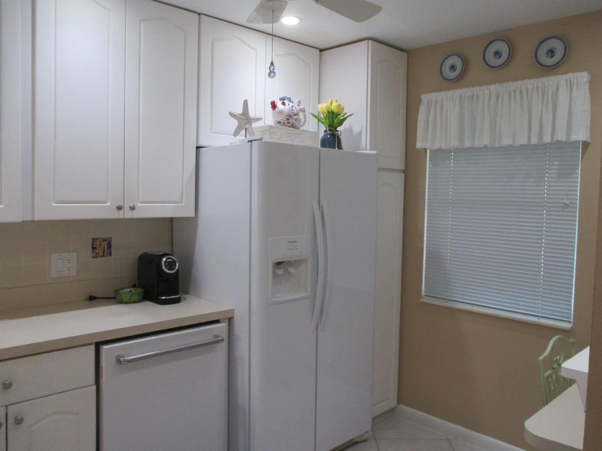 Stunning 2/2 Villa with enclosed patio. All IMPACT Windows. Updated bathrooms and kitchen cabinets w/ tiled backsplash. Knockdown ceiling, no popcorn. Maytag full size washer and dryer on patio with extra storage closet. All tile floors, 6 ceiling fans, reverse-osmosis water filter under kitchen sink. Newer dishwasher, WH and refrig. One occupant must be 55+. 24/7 guard gated active community. Maintenance includes Comcast Cable with premium channels, High Speed Internet, bldg insur, water & sewer, clubhouse facilities, social director, courtesy bus two days a wk to grocery store & shopping, etc. Come Discover Golden Lakes Village.