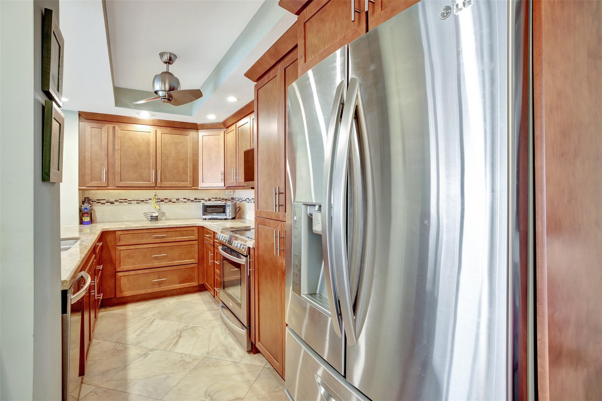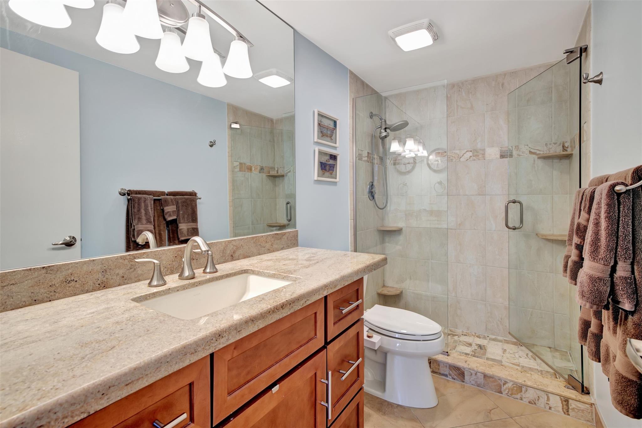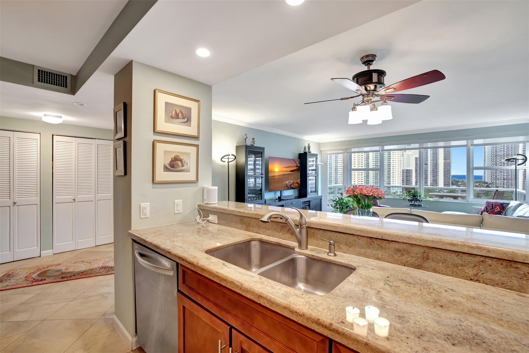 Move IN READY. This significantly remodeled 2 bedroom beauty offers sweeping views of the ocean, pool and 5 surrounding acres. Immerse yourself in the serenity of the sea and the allure of a crystal-clear pool from the comfort of your own living space. Entertaining is more fun with this Chef's kitchen featuring all LG appliances, granite counter tops, soft close wood cabinetry and a snack counter. The bedrooms are equipped with California closets, ensuring both style and organization. Indulge in the convenience of a huge walk-in closet, providing ample storage space for your wardrobe. Building is A+ insurance rated, physically and financially sound, all work completed and paid for. Internet & cable included in maintenance. 55+ community, cash only, no renting.