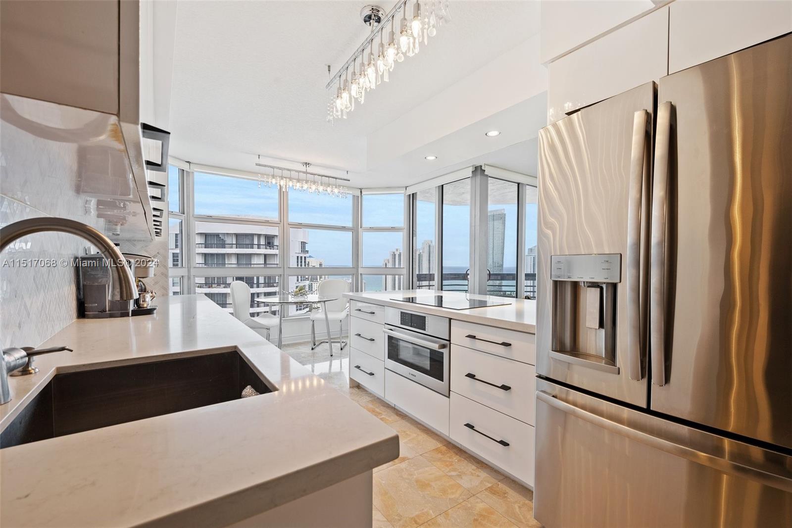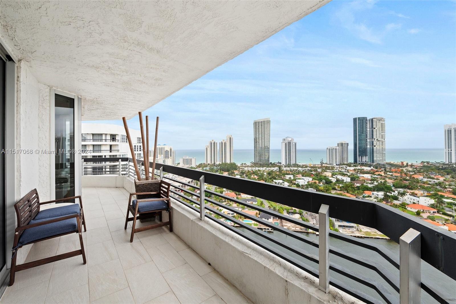 With breathtaking views of the ocean and Intracostal and wrap-around balcony, this corner unit features abundant natural light, hurricane impact windows and doors, marble floors, a beautifully remodeled kitchen with quartz countertops, open living, and dining room. The building features a gym, heated pool, jacuzzi library, sauna, tennis courts, children's playground area, mini-market, beauty salon, marina and restaurant. It is also conveniently located minutes from Sunny Isles Beach, houses of worship, the Aventura Mall, and schools.