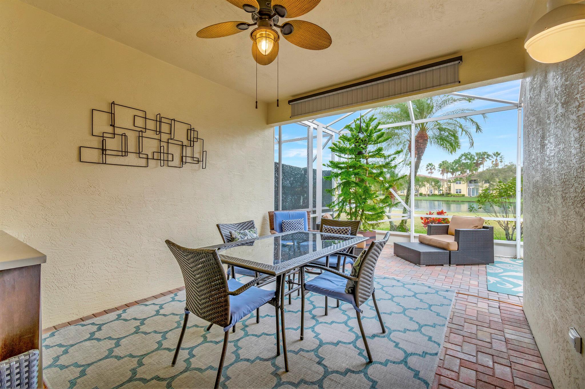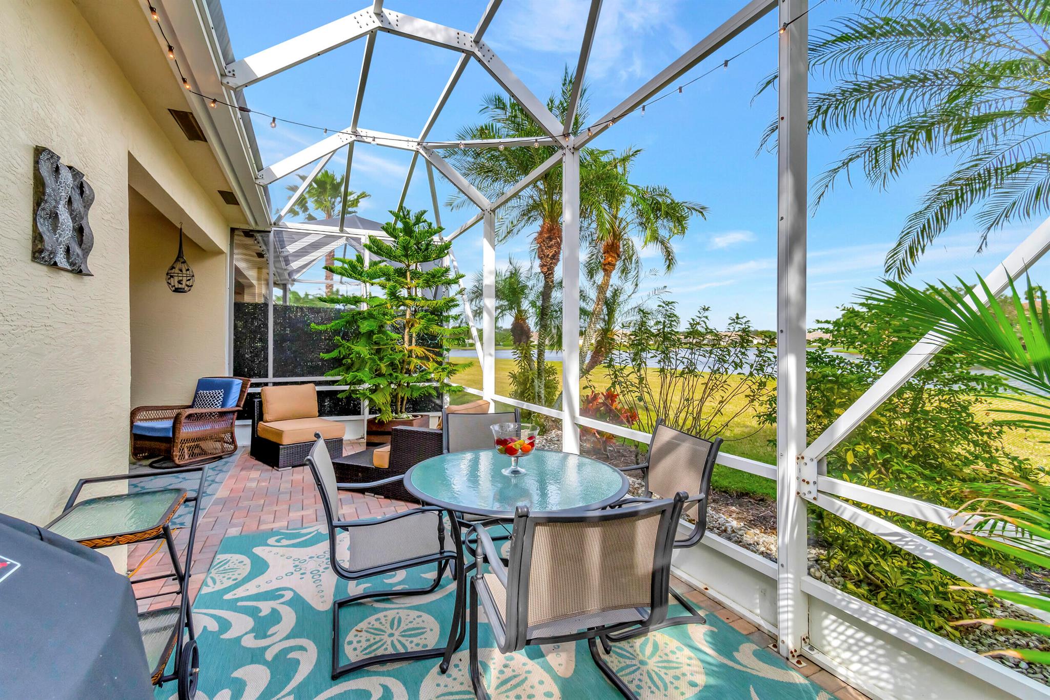 Stunning Lake Views From Extended Screened Lanai, Great Room, Kitchen & MBR in this Amazing Rare Upgraded 3BR 2BA End Unit Villa - Baywinds is a Prestigious 55+ Active Adult Pet-Friendly Resort Style Community. Open Plan, 100% Carpet Free. Elegant Neutral Decor, Spacious, Light & Bright. Large Kitchen w Pantry, Newer SS Appl, Wide, Deep SS Sink, Breakfast Bar. Large En-Suite Primary w walk-In & Xtra Closet. Upgrades in Primary BA, Sep Vanity Area & Pvt Stall Shower & Loo. 2 Guest BR's, Upgrades in Guest BA. Vaulted Ceilings, Ceiling Fans w Lights, Custom Drapes and Window Treatments throughout, Inc. Plantation Shutters. A/C 2022. HWH 2014. Accordion Shutters . Immaculately Maintained Home on Spacious Property, Sumptuous Landscaping. 1-Car Garage w Extra Storage, Attic.
