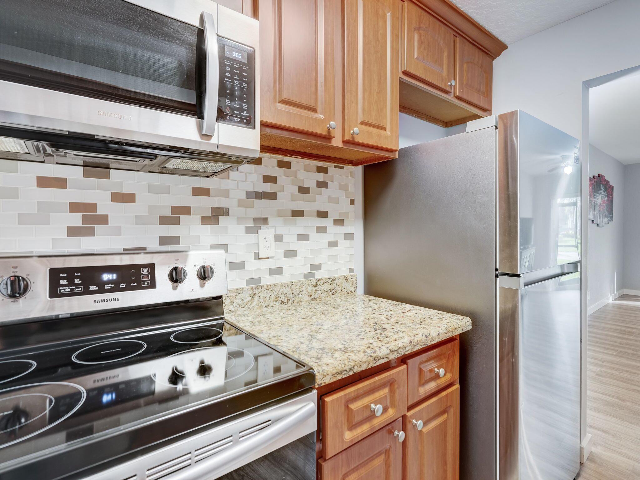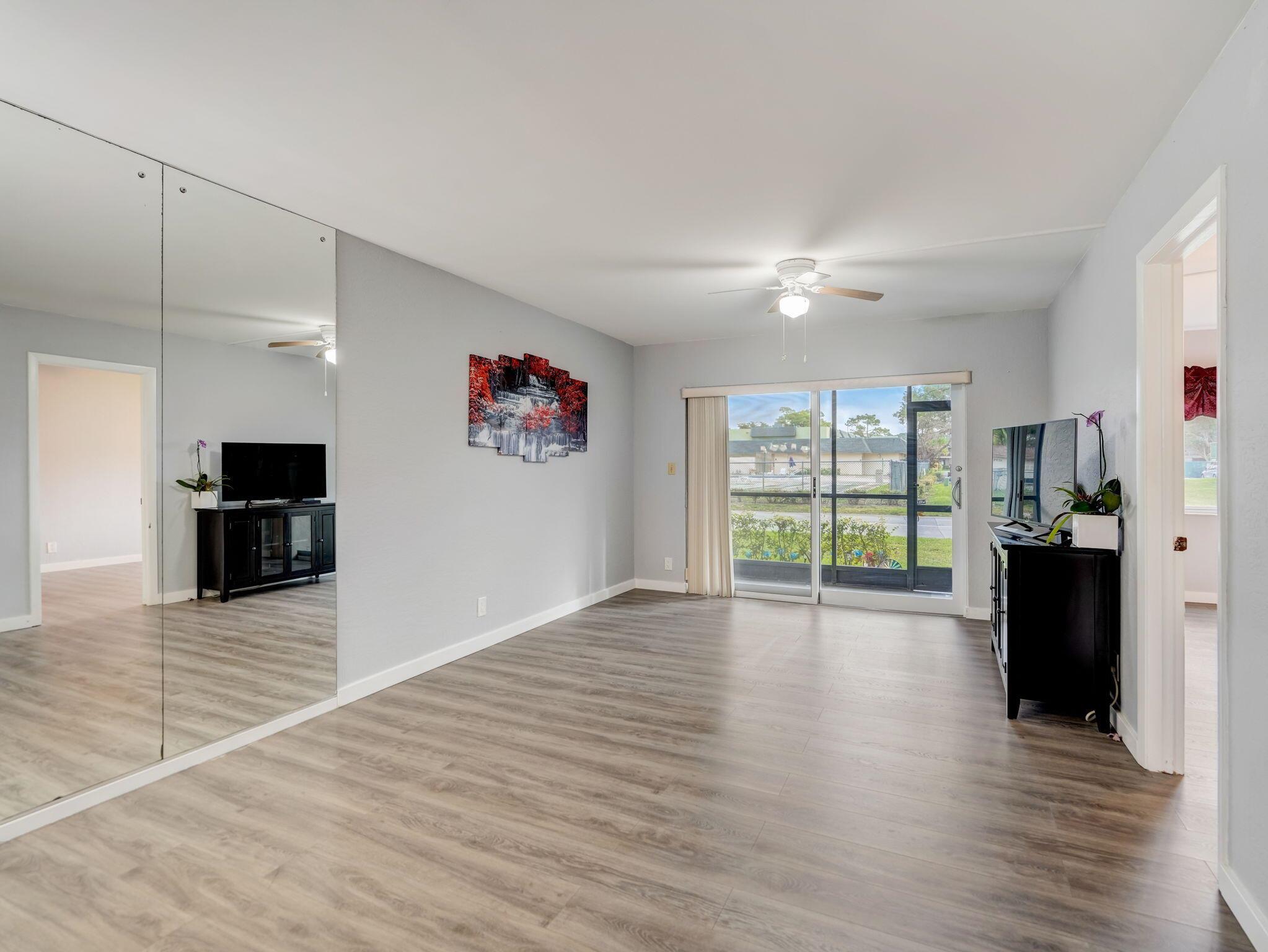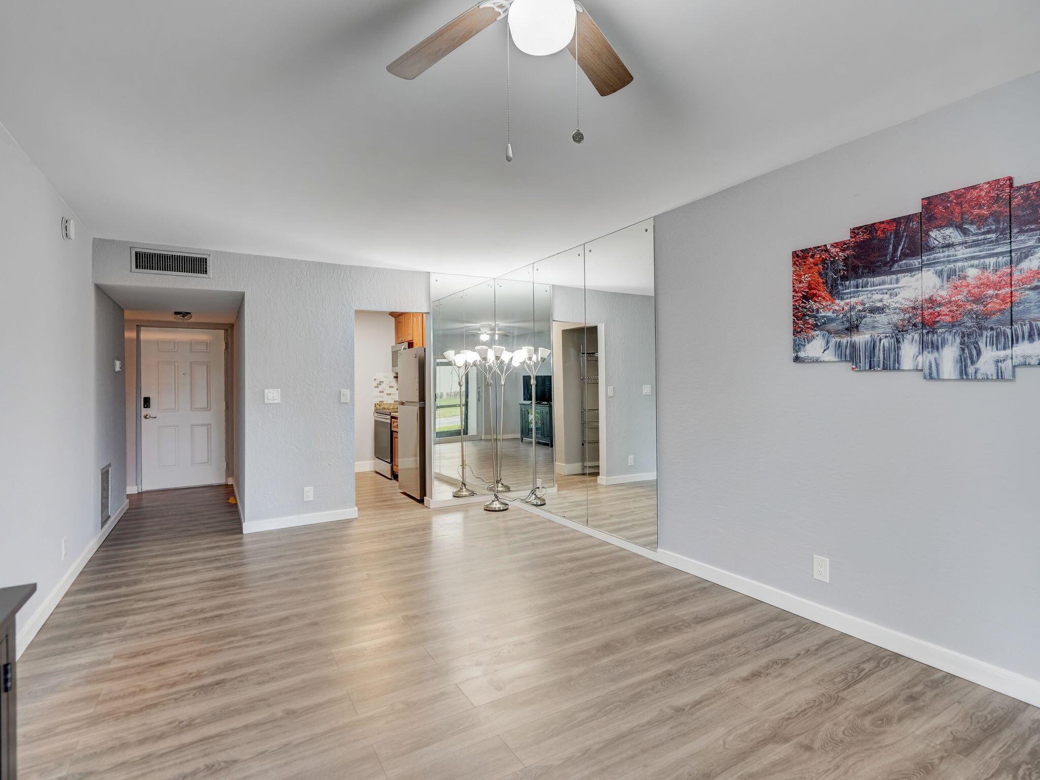 Welcome to your newly remodeled condo! The interior features a fresh and contemporary feel, thanks to a new AC and a fully renovated bathroom. The kitchen is equipped with sleek, new appliances, and though ready for a washer/dryer setup, the building's laundry facilities are conveniently just across the hall. Safety and efficiency are ensured with impact windows and a sliding door, while the interior has new wood-look finish floors, fresh paint with a knockdown texture, and a new water heater. With one assigned parking spot and additional guest parking available, this condo offers a blend of modern living and convenience.