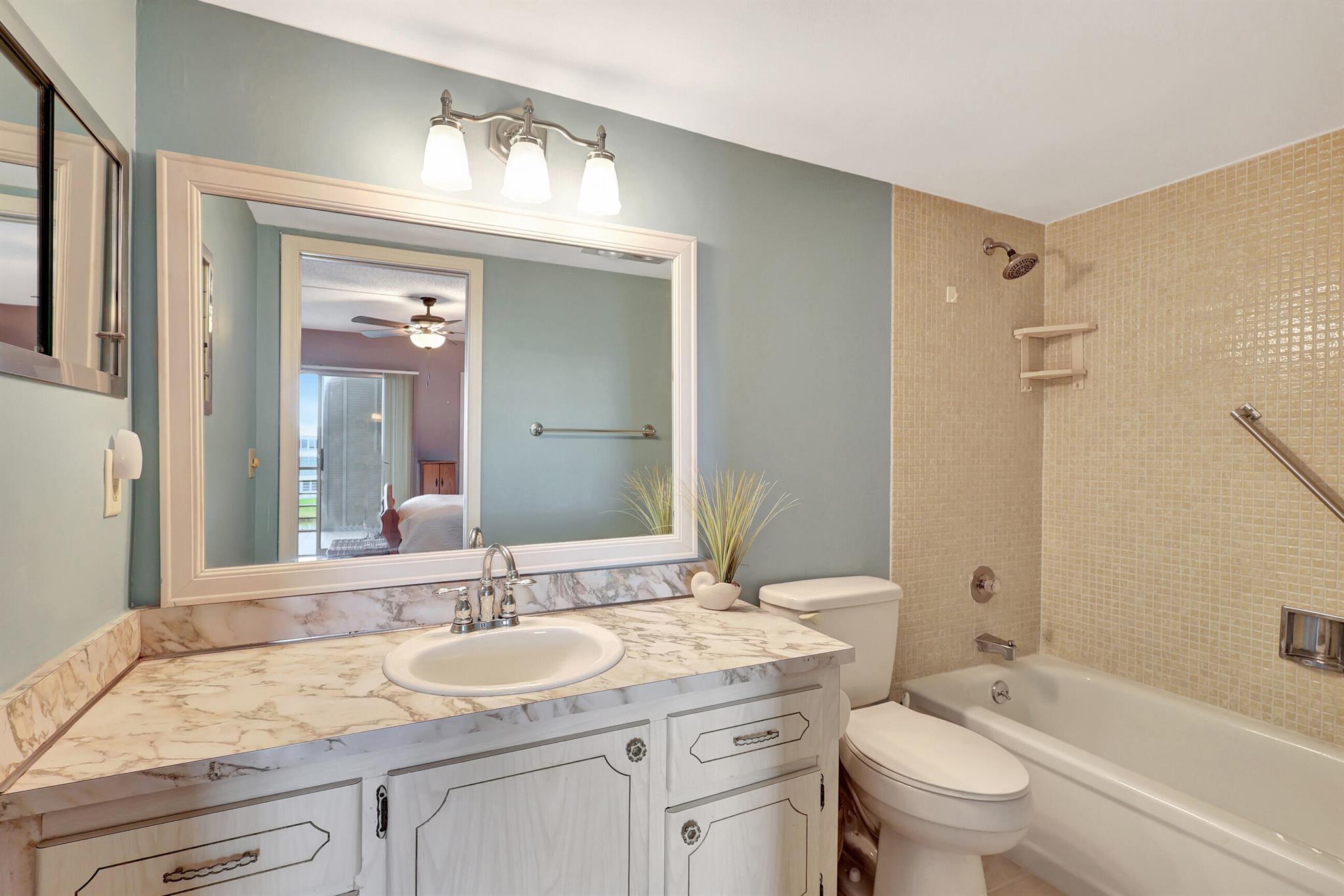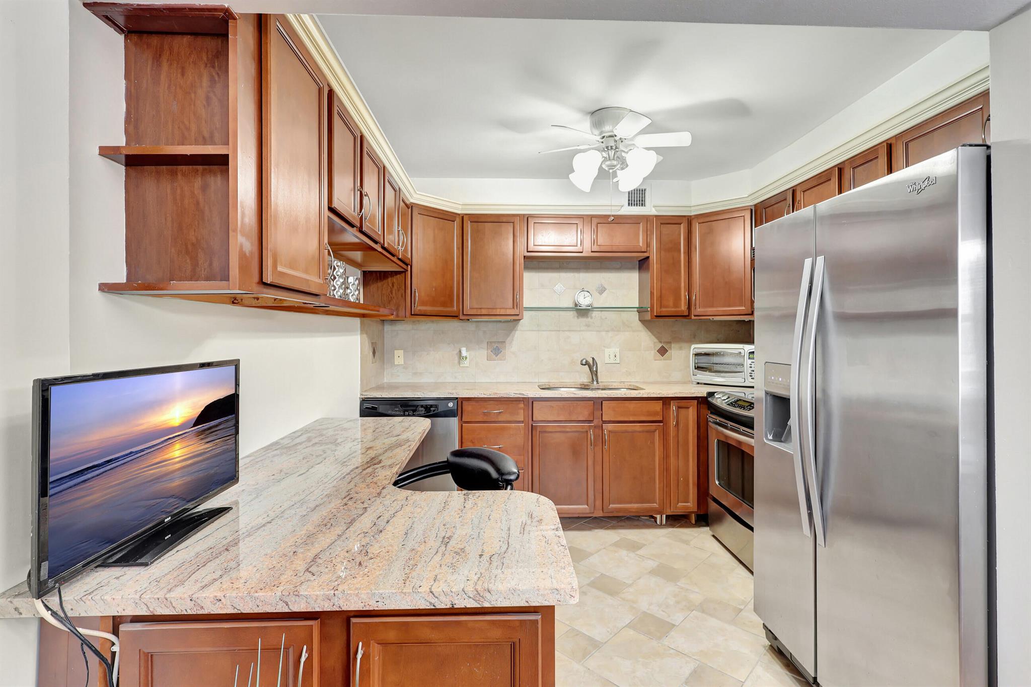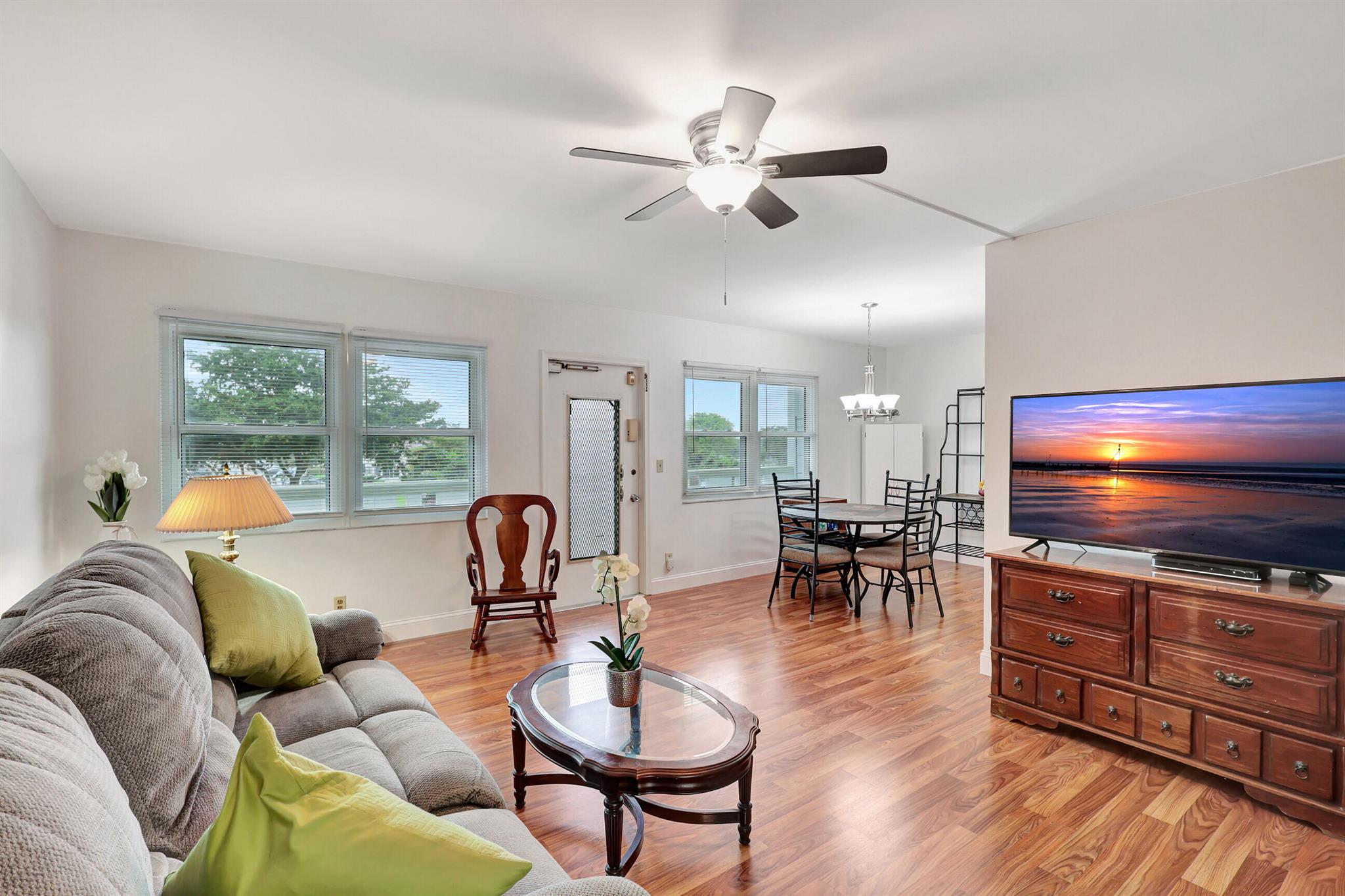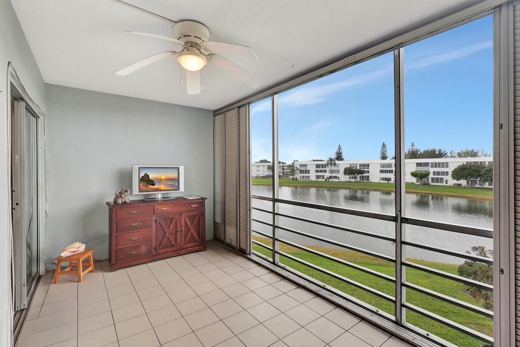 Amazing panoramic lake views in this bright 2 bed 2 full bath condo with 1152 total sg ft to enjoy and entertain your family and friends. This unit features newly installed stylish engineered flooring, freshly painted and No popcorn ceiling in the living, dining room, hallway and kitchen areas. Relax on your super large, tiled lanai and enjoy the plush greenery and stunning lake views. The immense main bedroom has room enough for a king size bed and has a large walk-in closet. New ceiling fans in the living room and both bedrooms. Roof is only 2 years old, close proximity to the two Wellington residence only swimming pools, which are equipped with bathrooms, saunas, changing rooms and showers. Residence private community bus stop is right in front of the building which will take you