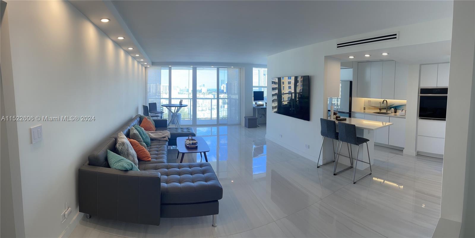 22 floor, amazing views of the ocean and intercoastal. Bright unit, renovated with all permits. The building is less than 5 min walking distance from the beach. Building was undergoing a number of upgrades/renovations: pool, elevators, balconies, building new exterior paint, lobby - all done. Maintenance includes water, cable, internet and Total Appliances services. Assessment paid in full. Extra storage bin. Close to Aventura, Bal Harbor.