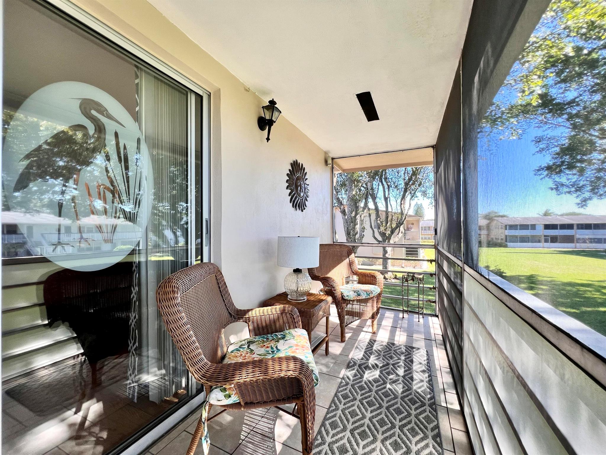 Beautiful & Move-in Ready In 55+ Century Village! Elegantly Updated & Meticulously Maintained CORNER 1/1.5 Floor Plan. Pretty Updated Kitchen With Expanse of Cabinets & Stainless Appliances. Updated Baths. Pretty Bedroom Suite With Updated En-Suite Bath With Tub/Shower, Wall of Closets, and Access to the Lanai. Lovely Long Screened Lanai Is A Delightful Spot To Take in The Garden Views & Breezes. Central AC (2023). Pretty Wood Look Laminate Flooring Throughout. Sold With Tasteful Lightly Used Furniture & Some Contents. Canterbury D Features A Pretty Resident Patio With Grill and Second Floor Laundry. Century Village is a 55+ Resort Style Community With So Much to Offer...