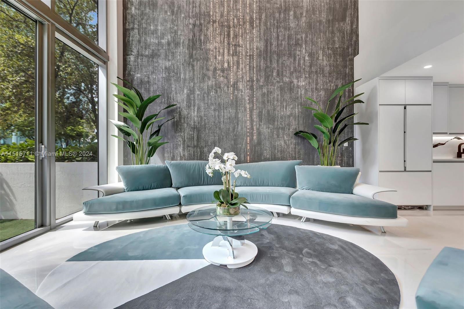 Captivating 2-story loft with thoughtfully designed interiors including Swarovski custom wallpaper from London adorned with over 100 crystals and LED lights, a Crystal Chandelier imported from Italy and illuminated hallways. First floor residence with an outdoor garden accessible directly from the living room leading out to the street and floor-to-ceiling hurricane impact windows complete with electric shades and a custom-designed kitchen. Living space and a guest suite conveniently located on the lower level, while the upper level houses the primary suite and enclosed den, perfect for a home office or third bedroom. Terra Beachside amenities include a swimming pool, fitness center, and lounge.
