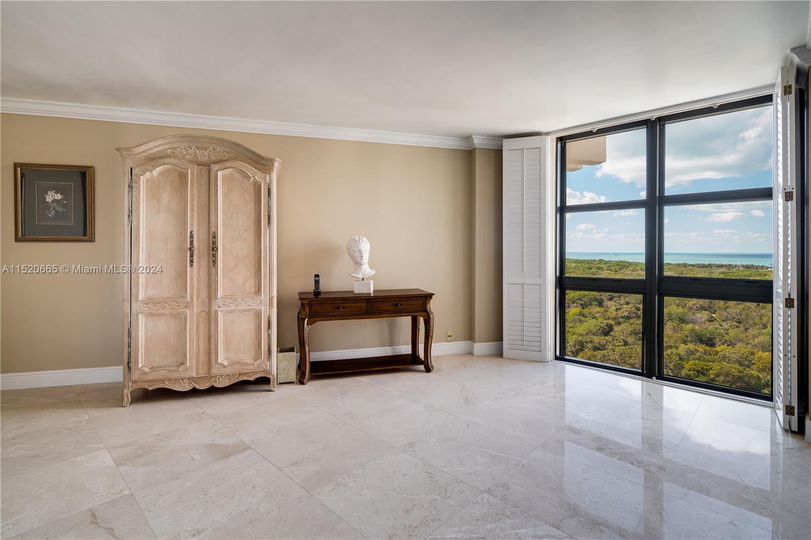 Experience breathtaking panoramic views of the ocean, Bay, and State Park from this exceptional residence. Coveted South exposure offers an abundance of natural light throughout. Immerse yourself in this beautifully renovated split-plan model, featuring light natural stone flooring, an inviting open kitchen, and custom wood cabinetry and moldings. This residence combines stunning vistas with a meticulously designed interior. Easy to showcase, this property invites you to indulge in a lifestyle of both serenity and a true island living. Upper garage parking space #83.