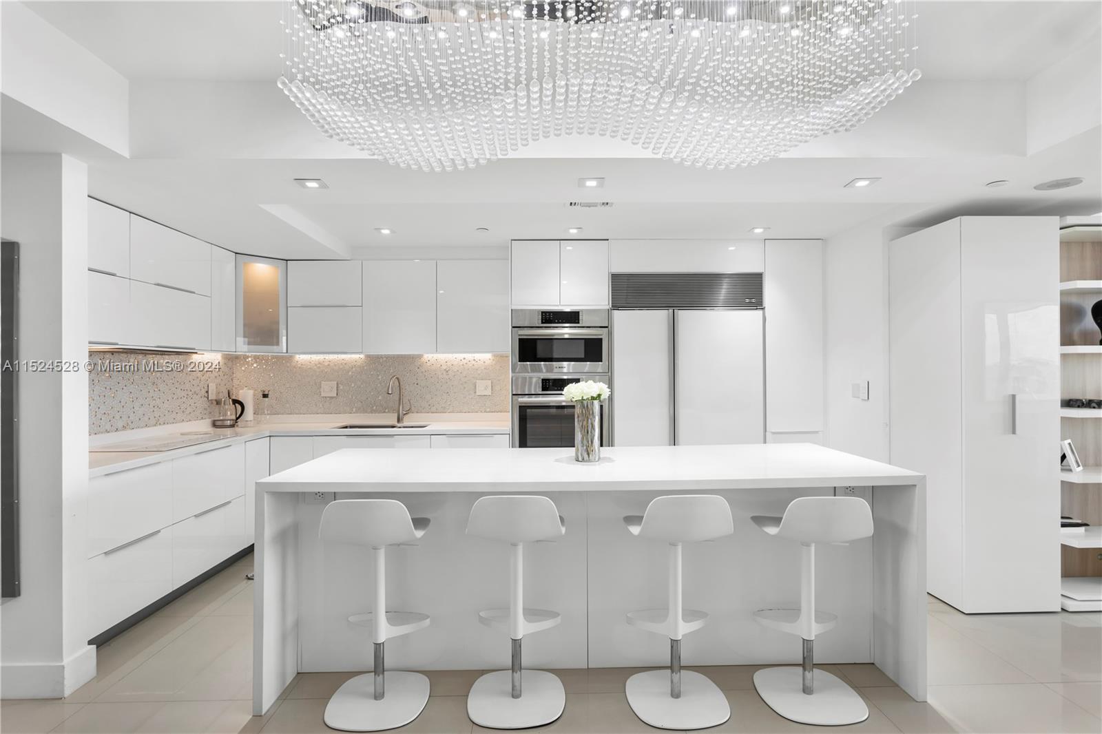 This flow-through unit offers beautiful SUNRISES and breathtaking SUNSETS everyday from its two expansive balconies! This fully remodeled 3-bedroom, 3-bath residence features convenient Murphy bed in the living room. The heart of this home is its stylish kitchen, equipped with Subzero and Bosch appliances, complemented by all-electric blinds. Experience the ultimate in oceanfront living with resort-style pools, a tennis club, restaurants, a kids' play area, attended lobby and full security. Walk to new paddle and tennis courts, and enjoy the convenience of valet and supercharges for electric vehicles. Embrace the epitome of the luxurious lifestyle!