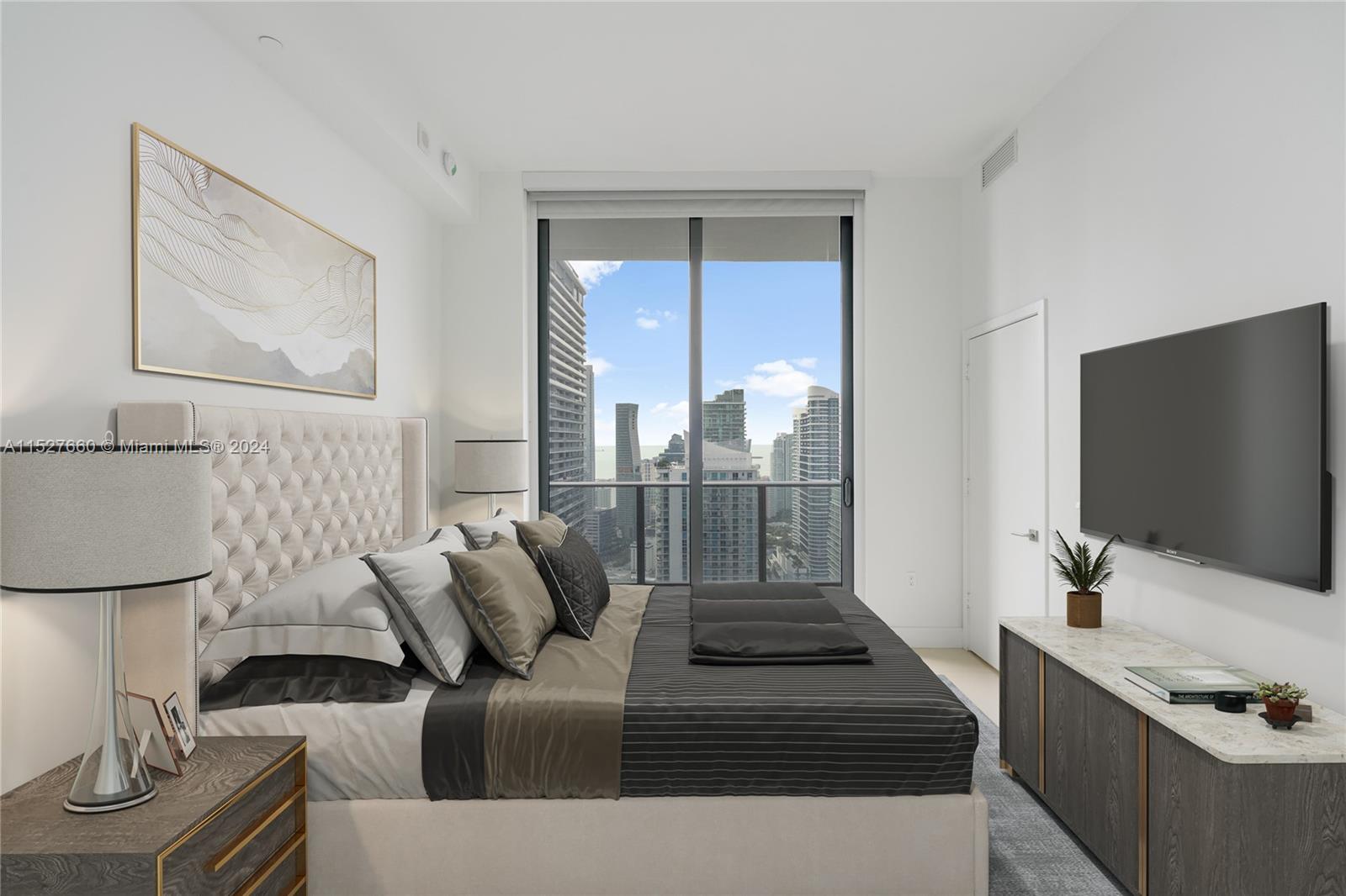 This Lower Penthouse at Brickell Heights East Tower is an exquisite residence, featuring 3 bedrooms and a convertible den, 4 full bathrooms, and breathtaking views of Biscayne Bay and the Miami skyline. The floor-to-ceiling windows allow for abundant natural light and showcase the expansive balcony unit has 12 ft high ceilings throughout. Second bedroom is also an en-suite master bedroom. The residence also includes 32 x 32 porcelain tile, a spacious laundry room, and 3 parking spaces. You'll enjoy the convenience of being within walking distance to Brickell City Center and a variety of top-rated restaurants and shops. Live in luxury and experience the best of Miami's city lifestyle. UNIT COMES WITH 2 ASSIGNED PARKING SPOTS AND 1 VALET.