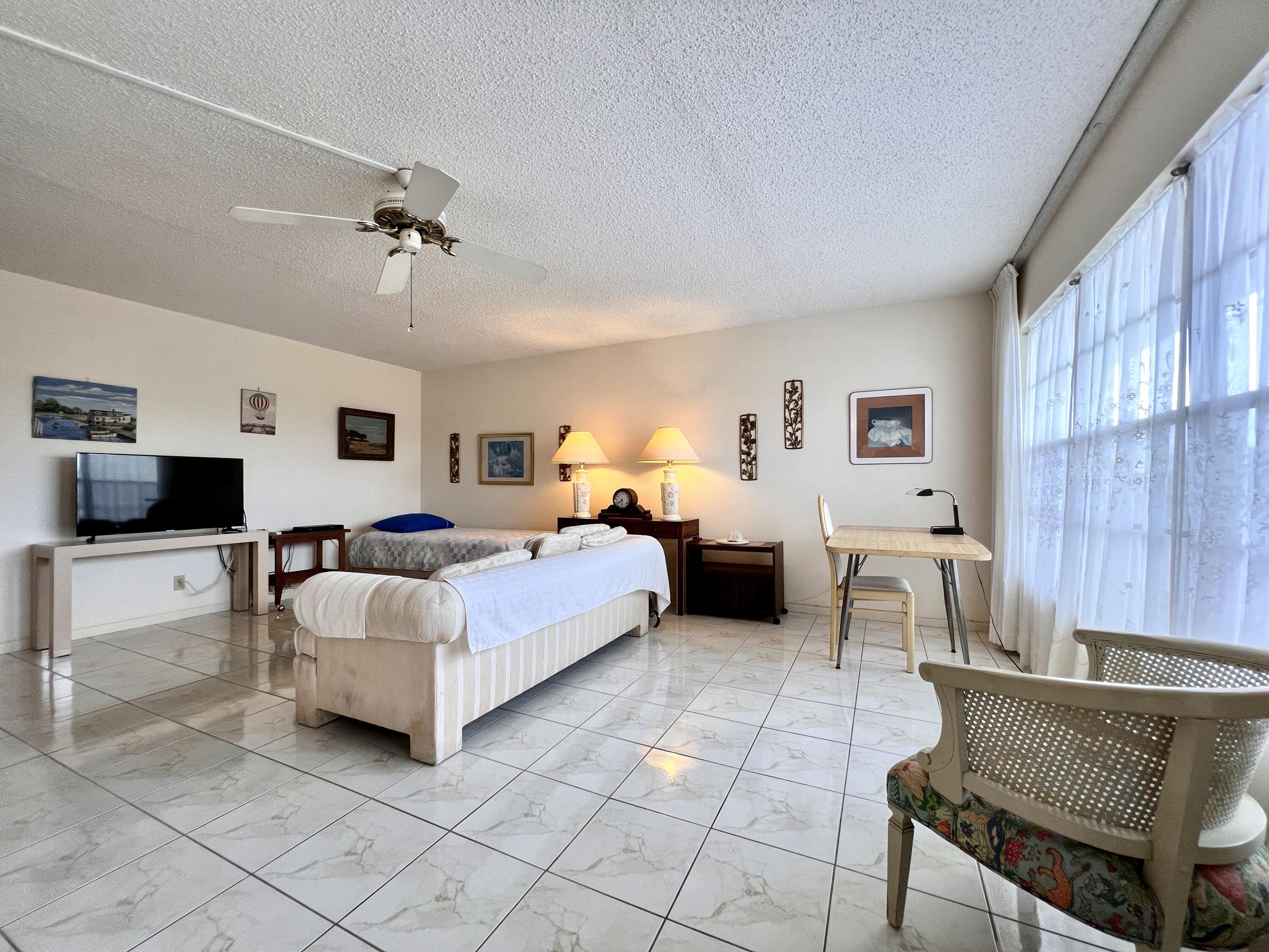BRIGHT & SPACIOUS IN 55+ CENTURY VILLAGE! Enjoy the largest 2/2 floor plan in the luxury Greenbrier section. Spacious rooms making entertaining a breeze. Neutral tile flooring flows throughout. Large bedroom suite with full ensuite bath, walk-in closet, and access to the lanai. Enjoy beautiful sunsets from the long lanai. Sold furnished. Greenbrier B is a luxury building with elevator, trash chutes, extra storage, and access to the private Greenbrier pool. The Greenbrier section is close to the Haverhill Gate & Main Clubhouse. Century Village is a resort style 55+ community with so much to offer...