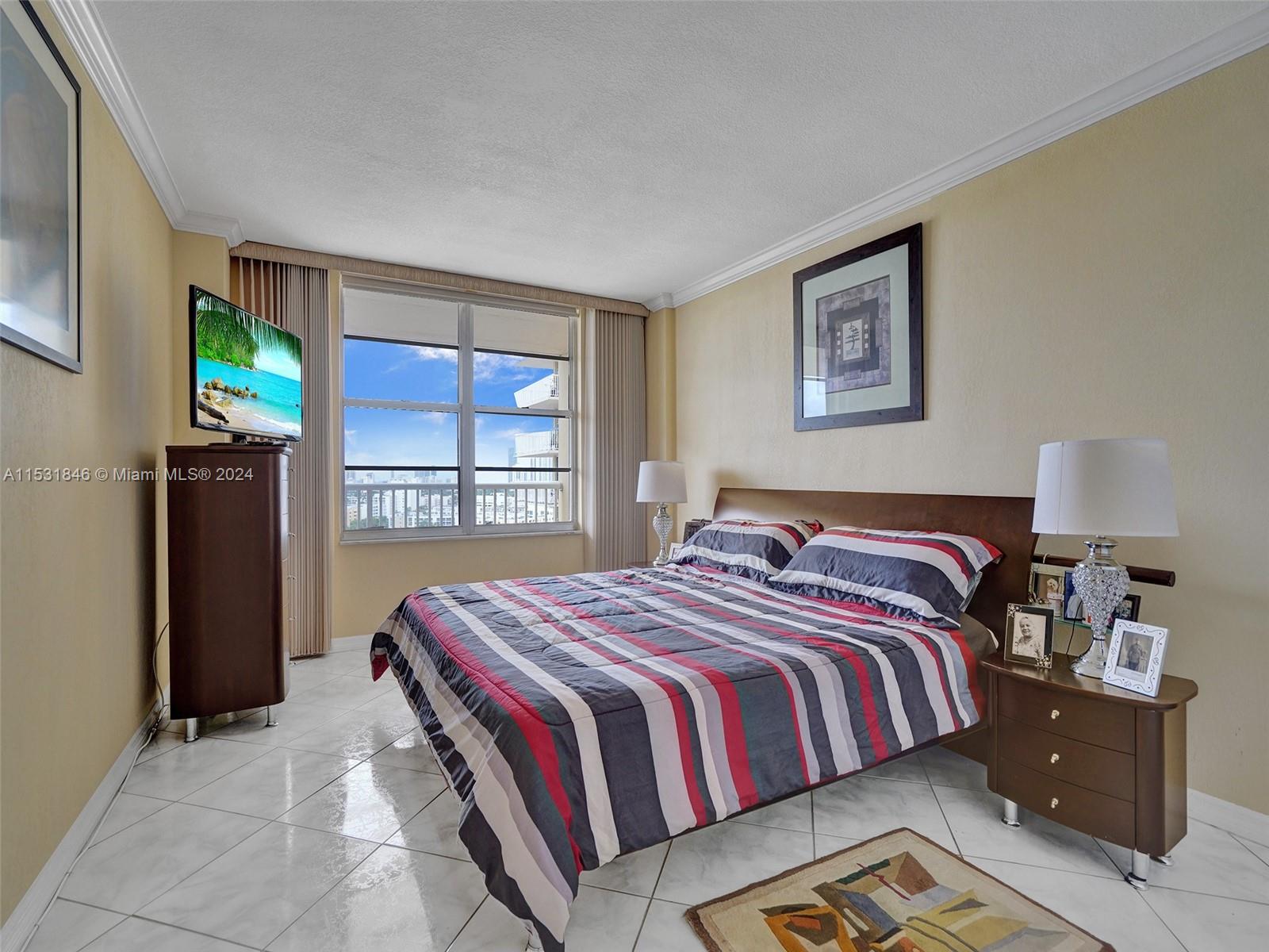 Great Location! Sunny Isles Beach! Bright & spacious 2 bedrooms, 2 bath condo. Split floor plan. Eat-in kitchen, a lot of closets. Just across the street from the Ocean beach and parks. North exposure. Amenities include a 24-hr security concierge parking pool sauna gym game and card rooms, auditorium, and Walking distance to school, shopping, and restaurants. 10 minutes away from the famous Aventura and Bal Harbor Malls. Internet, cable, repair of appliances, air conditioning system, electrical, and plumbing are part of the maintenance.