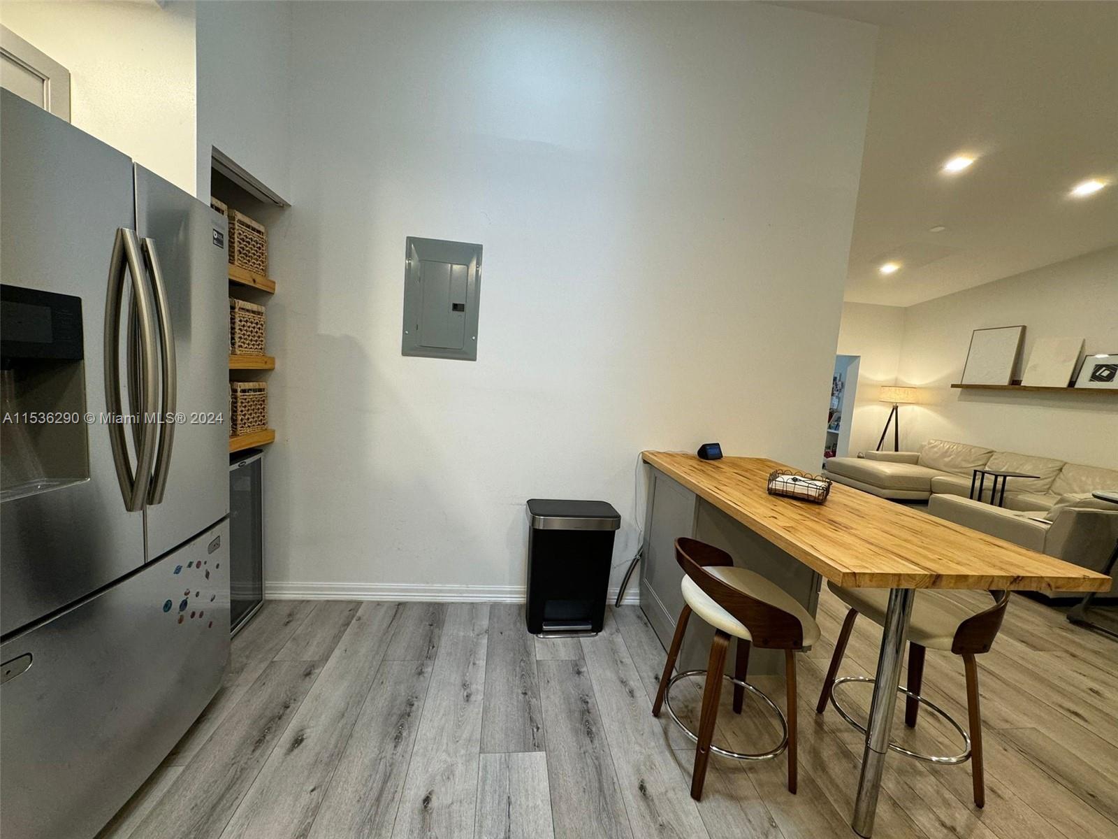 beautifully updated 3 bed/2 bath villa nestled in the Aventura Waterways. The kitchen boasts stainless steel, quartz countertops, a wine cooler, and a stunning butcher block kitchen island. New flooring, vaulted ceilings, blackout curtains, and a slip within the garage that can be utilized as an office space. The property also offers attic storage, two parking spaces, and an enclosed patio with floor-to-ceiling windows perfect for a den or office. Other features include a 2019 A/C unit and an upgraded electrical panel. Conveniently located within walking distance of the charter high school, Gulfstream Park, and just a stone's throw from Aventura Mall & Turnberry Isle Country Club and Golf Course. Security gate, pool, and private access to Waterways Marina.