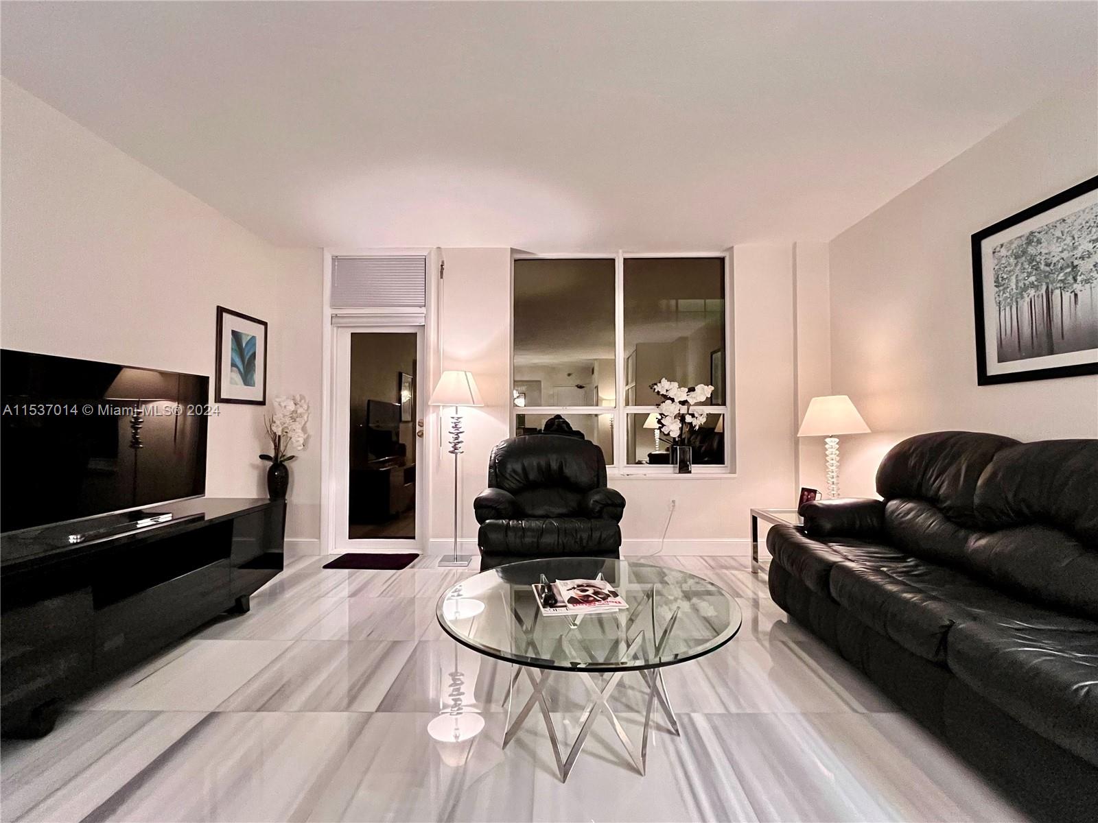 Simply bring your luggage to this elegantly furnished, spacious 1 bed with 1.5 bathrooms. Enjoy stunning water views of both the ocean and the Intracoastal Waterway from the expansive balcony situated on the 14th floor, allowing ample natural light throughout the day. Adorned with beautiful marble floors in the living spaces, the apartment features an updated white kitchen with granite countertops, bathroom with a frameless glass shower. Ample closet space throughout, including a fully fitted walk-in closet in the master bedroom, along with an extra storage unit. Located on the oceanfront, amenities including beach service, a renovated pool area, a gym, concierge services, valet parking. Situated within walking distance of the upscale shops and dining options of Bal Harbour and Surfside.