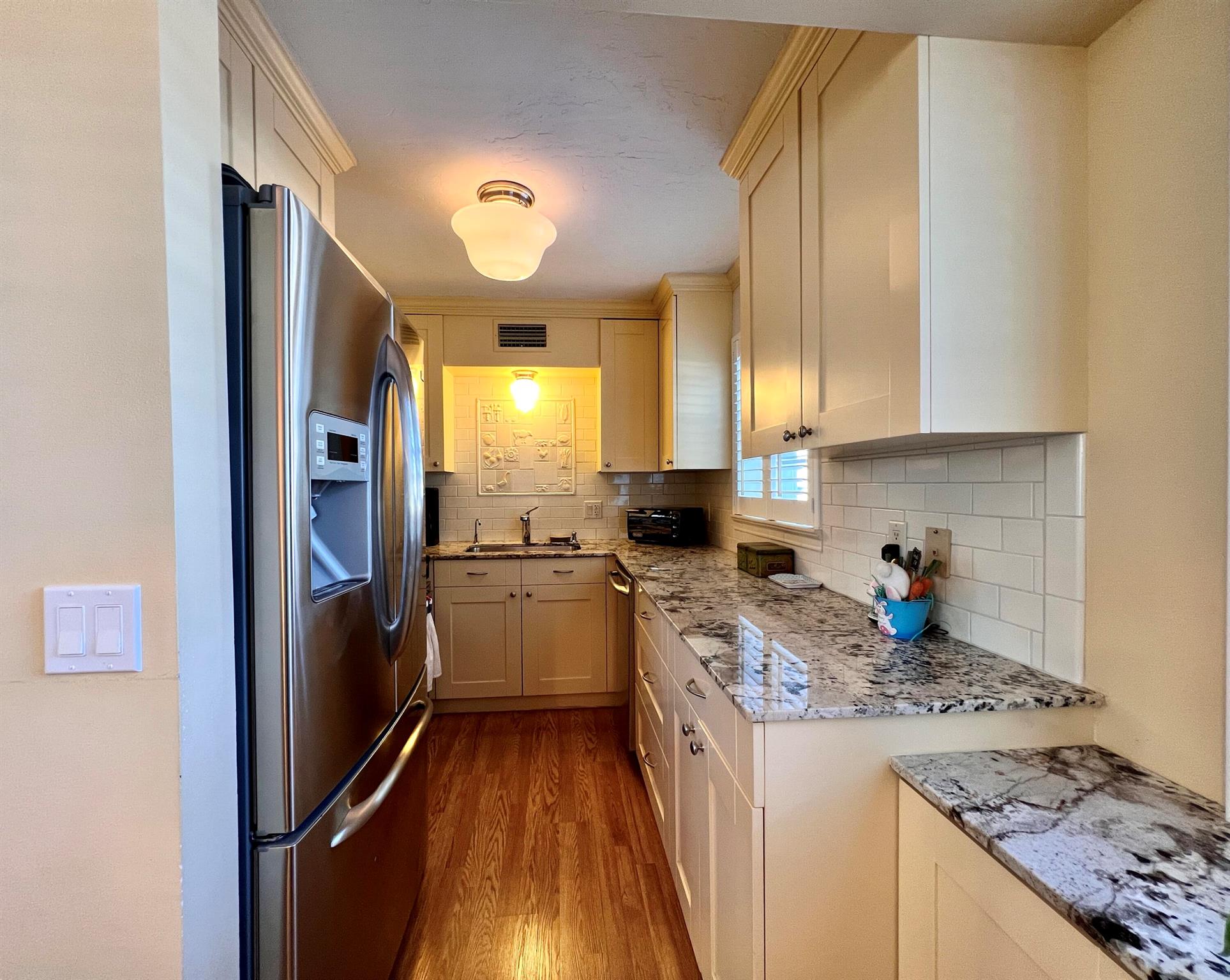 Charming & Updated In 55+ Century Village! Move Right Into This FIRST FLOOR CORNER 2/1.5 With Updates! Pretty Updated Kitchen With White Cabinets, Granite Counters, Designer Subway Tile Backsplash, and Upgraded Stainless Appliances. Updated Baths; Full Bath Features A Step-in Shower. Extra Built-in Cabinets In Dining Area, Living Area, and Guest Room Maximizes Storage. Designer California Shutters On Windows. Lovely Wood Look Laminate Flooring With Updated Baseboard Throughout. Closet Systems. Accordion Shutters All Around. Sold AS IS. Building Features A New Roof in 2022 and A Tiki Hut Resident Patio For Outdoor Enjoyment. Century Village Is A Resort Style 55+ Community With So Much To Offer...
