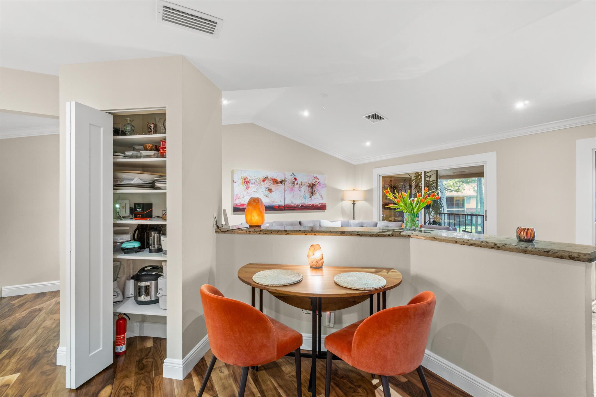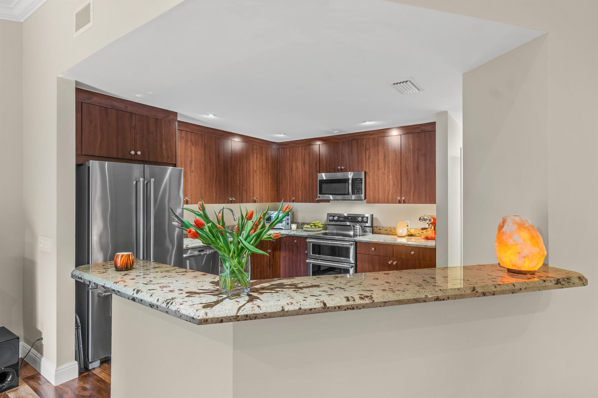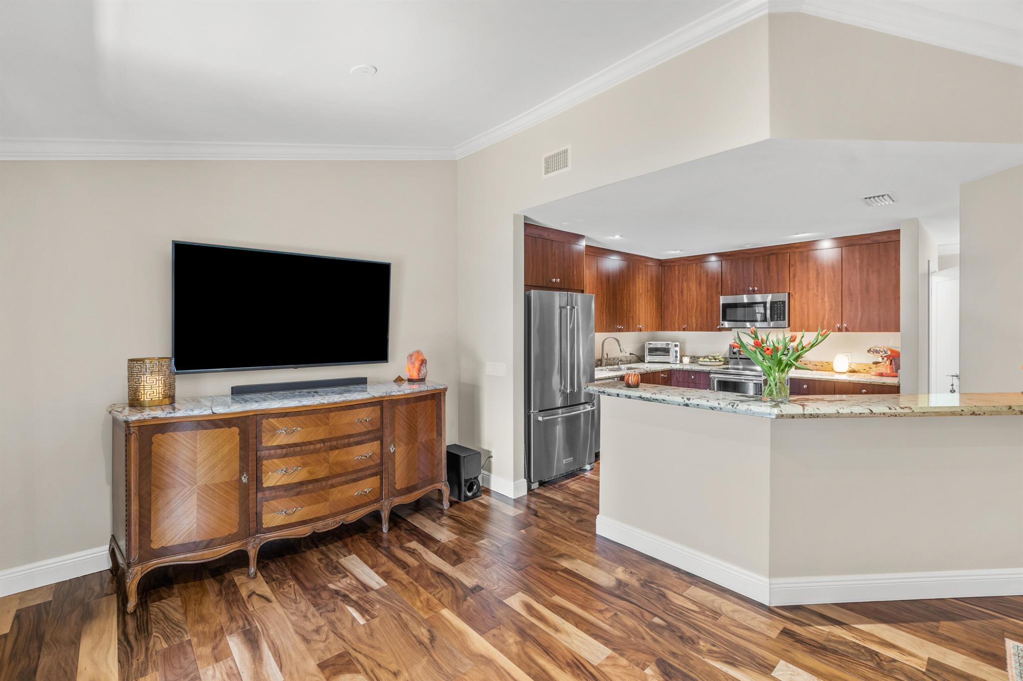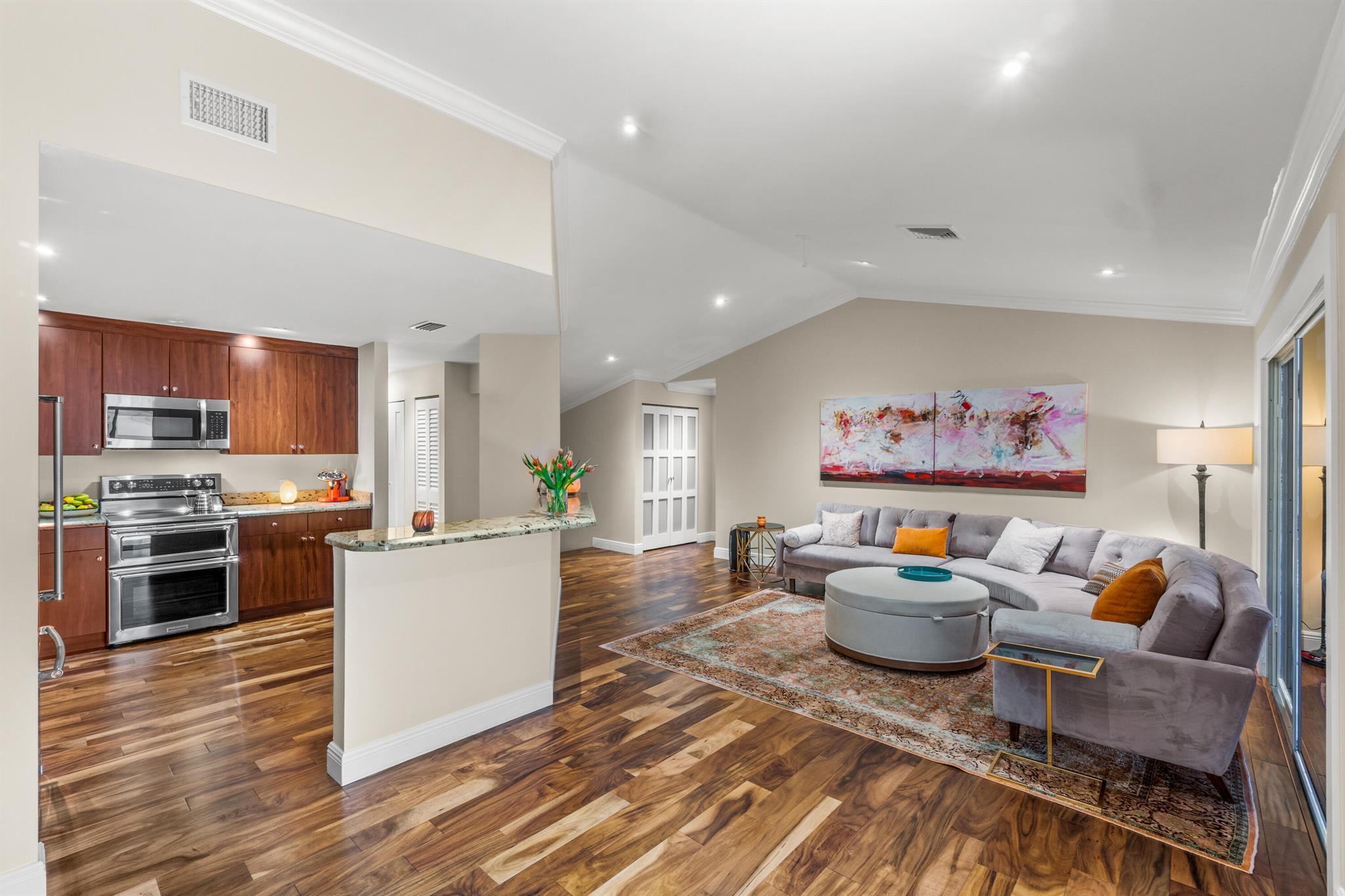 Welcome to 5560 Coach House Circle #C, a tranquil retreat that perfectly blends style & sophisticated living in the heart of Boca Raton. This pristine 2-bedroom, 2 bathroom coach home is in perfect move-in condition. A few of the many updates include high-end engineered hardwood flooring throughout, elegant crown molding, a beautiful wood kitchen with granite countertops & high-end stainless steel appliances, modern LED lighting, & so much more. Each room is accentuated by custom closets, ensuring that storage is both functional & aesthetically pleasing. Step outside onto the large screened in terrace & find yourself overlooking a serene greenspace. With the convenience of an attached garage, this move-in ready gem is the epitome of comfort. You will not be disappointed.