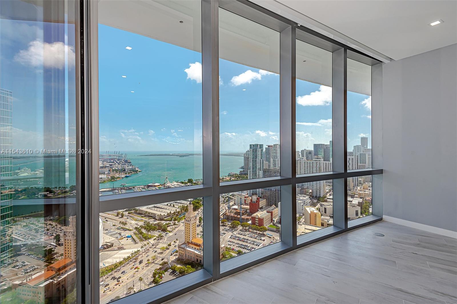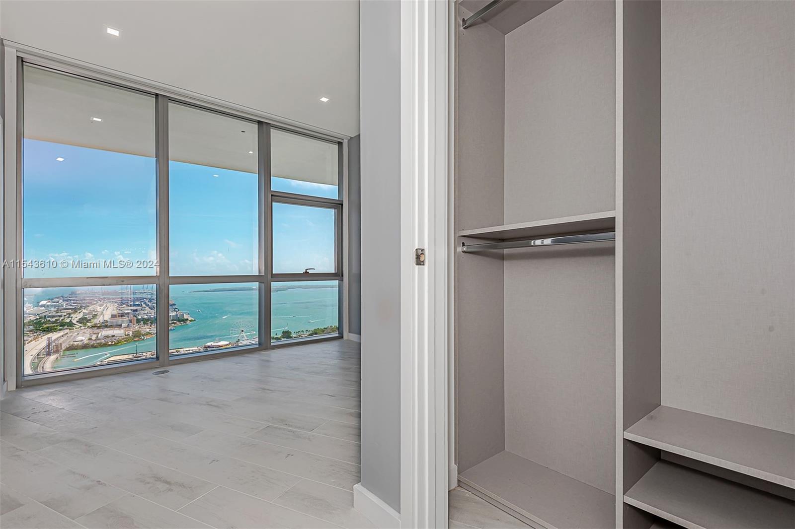 Spectacular, upgraded 2 bedrooms plus den with barn door and 3 full bathrooms, drop-down ceilings and wired for ceiling lamps, led lighting throughout, nice contemporary lamps, freshly painted, electric shades, tile floors, upgraded closets, even upgraded glass enclosure on second bathroom, no details spared. This unit has a spectacular view from a 45th floor, 10 foot ceilings and European kitchen. Building nominated most amenities in the World including Indoor Basketball Court, 5 Pools, Spa, Gym, Boxing ring, Virtual Golf, Racquetball, Kids Play Area, Observatory, Recording Studio and many others. Location is perfect, amenities second to none. Conveniently located close to Brightline Train Station, Port of MIA, Arena and minutes to MIA Airport, Wynwood, Miami Beach and so much more