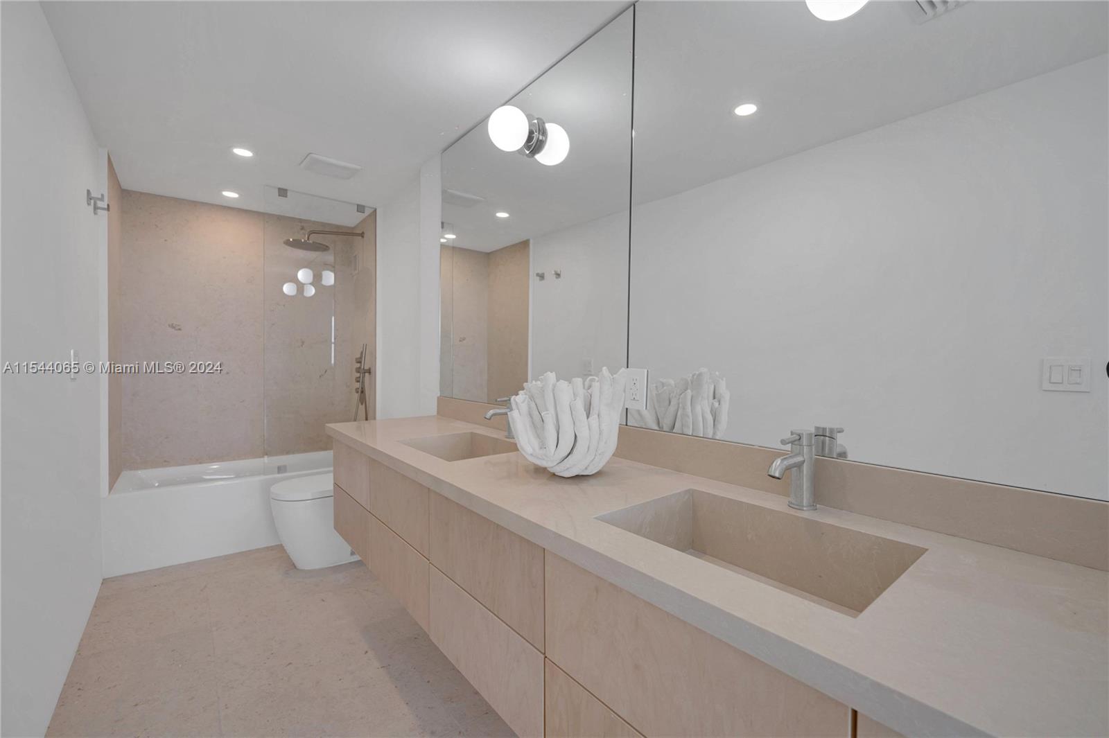 Modern renovated corner unit! This spacious unit has unbelievable Bay and Skyline Views from every room. This 2 bedroom 2 bathroom and den features beautiful stone floors throughout. Wood Cabinets in Kitchen and Bathrooms. Master Bathroom features dual sinks and combination shower & tub. Bedrooms and living space all have wall to wall windows facing West with views of Miami Skyline, Biscayne Bay, & Venetian Islands. 3 Island Avenue features a beautiful Bayfront pool and sundeck, 24 hour lobby attendant, assigned parking, Community Bar B Que grill. Designed by the famous Morris Lapidus this building has a distinct Art Deco decor in the lobby and architecture, Located walking distance from Sunset Harbor shops, restaurants, group training facilities and much more.