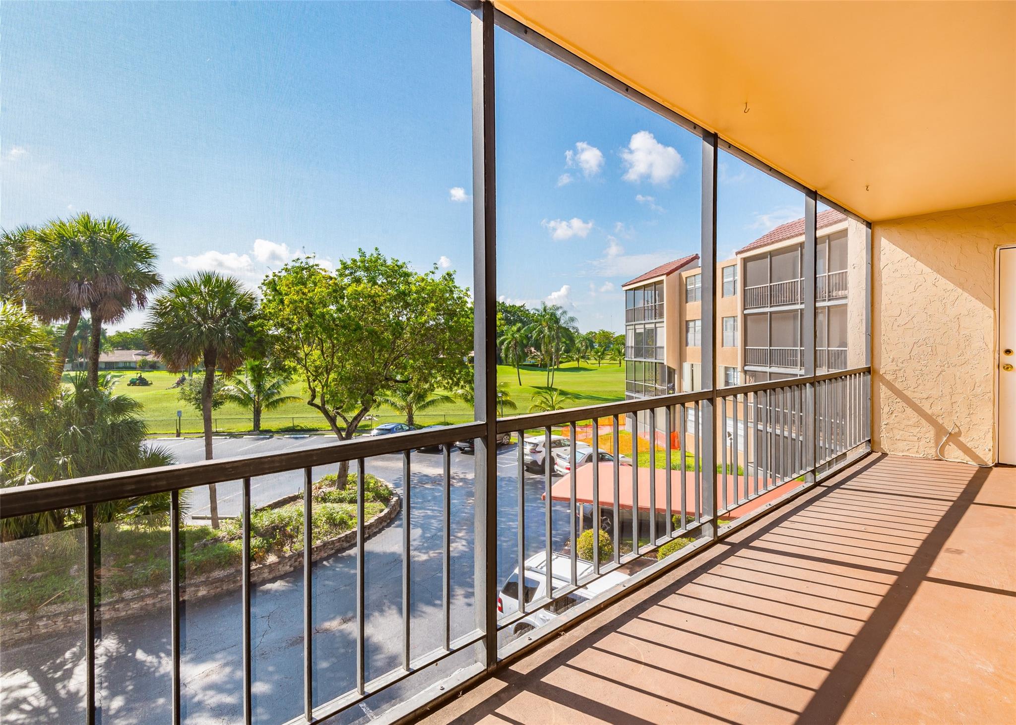 Located in the heart of Emerald Hills is this charming two-bedroom, two-bathroom unit located on the 3rd floor. It features an upgraded kitchen and bathroom. The condo offers a great screened-in patio with access from both bedrooms and living room, providing a lovely outdoor space to relax and enjoy the golf course views. A large walk-in closet and a conveniently located parking spot enhance the convenience and functionality of the unit. The community amenities include two wonderful pools, a large clubhouse/community room, a gym, and a barbecue/picnic area, offering residents various options for recreation and relaxation. Moreover, the condo is within walking distance of the park, golf course, and houses of worship, making it a desirable location for those seeking a well-rounded lifestyle.
