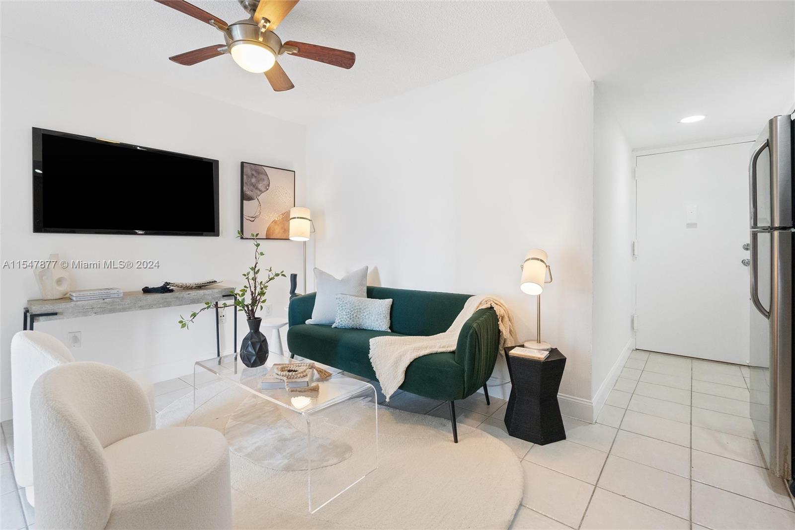 Updated studio in the heart of North Beach on Normandy Shores Island. Bedroom separated from living room/kitchen with a hallway so feels like a 1 bedroom. Short walk to beautiful sandy beaches, parks, shops, entertainment, and restaurants. Across the street from Fairway Park and Normandy Shores golf course. Waterfront building, includes 1 assigned gated parking space. Unit features updated appliances, granite counters, lots of closet space, and balcony off bedroom. Very low maintenance fees.