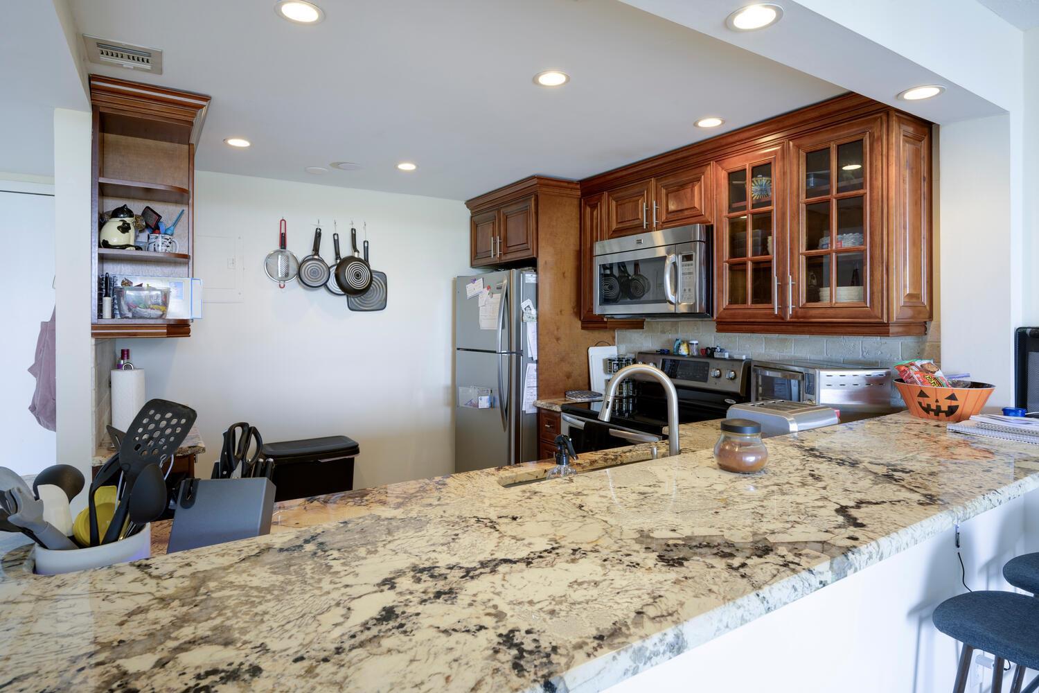 This renovated unit boasts convenience and style, just minutes from the Outlet Mall, Downtown, and I-95. Enjoy a modern kitchen with stainless steel appliances, laminate floors, and custom closets. Additional storage and laundry room on the same floor add to the convenience. Accordion shutters provide security, while a new roof (2023) and fresh exterior paint (2024) bring peace of mind with no assessments. Breakwaters, a gated community, offers an Olympic-sized pool, gym, clubhouse, and car wash. HOA covers exterior insurance, trash, water, sewer, amenities, landscaping, and cleaning. Don't miss out on this exceptional opportunity!