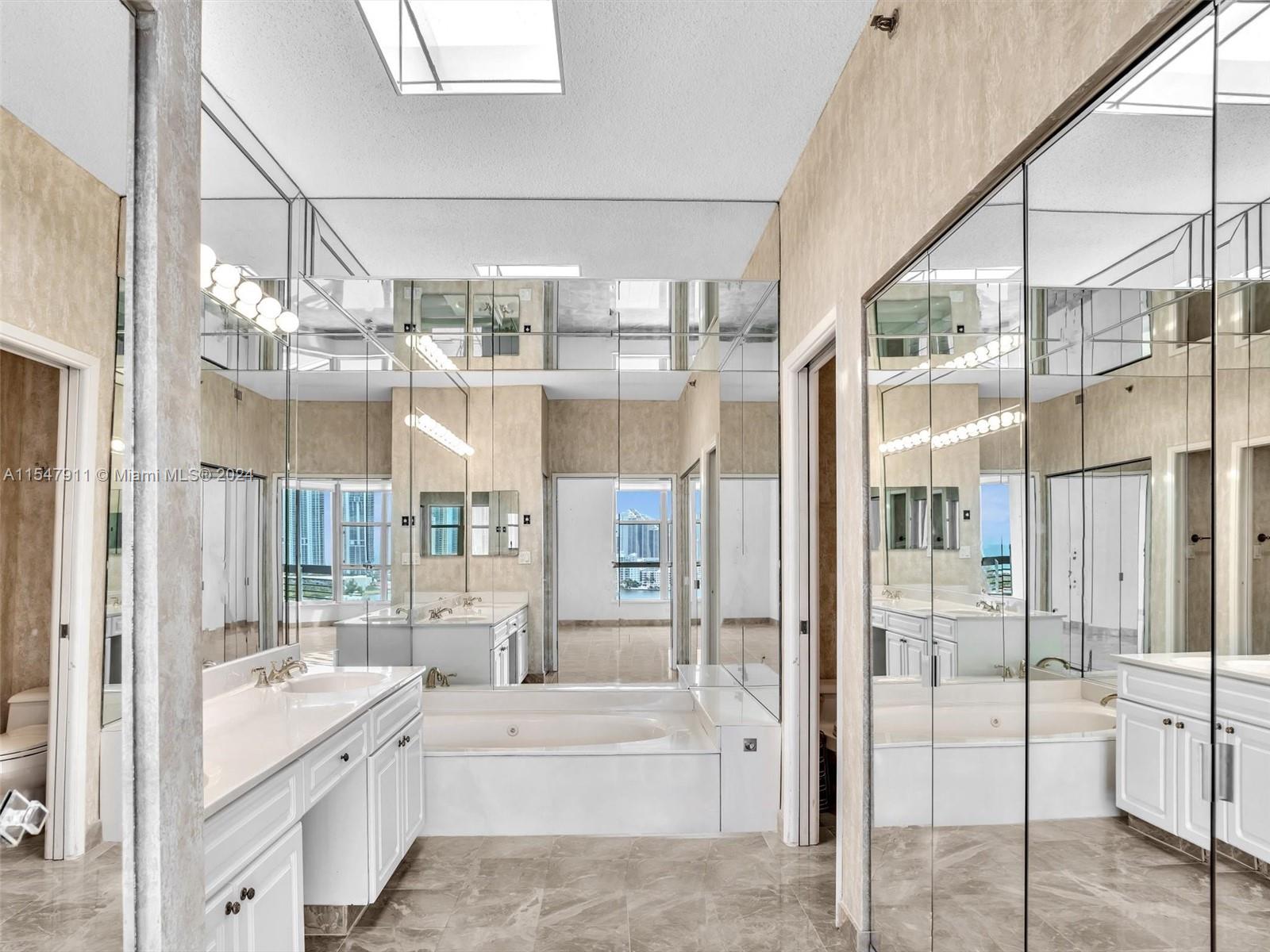 PRICE TO SELL!! BEAUTIFUL OPEN AND BREATHTAKING VIEW OF THE BAY AND OCEAN as you enter into this inviting 2BR 2 bath penthouse in Mystic Pointe 300. This beautiful and bright unit welcomes you with marble throughout and a special touch of skylights in the kitchen and master bathroom, flooding the space with warm, natural light. Five-star amenities with gourmet restaurant, tennis courts, tennis pro, pickleball courts, beauty salon, mini market, lush gardens, marina, lap pool, jacuzzi, sauna, meeting rooms with large screen TVs, and more! Mystic Pointe is located close to the Turnberry Golf Course, the Aventura Mall, the beach, and houses of worship. No lease permitted prior to one year of ownership.
