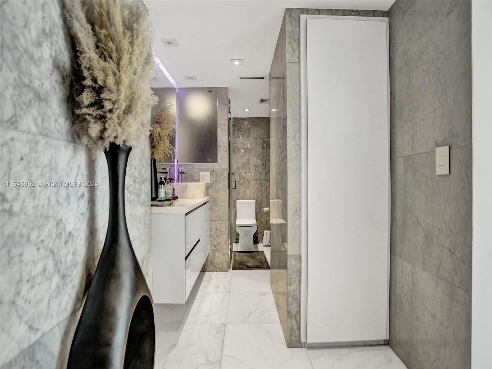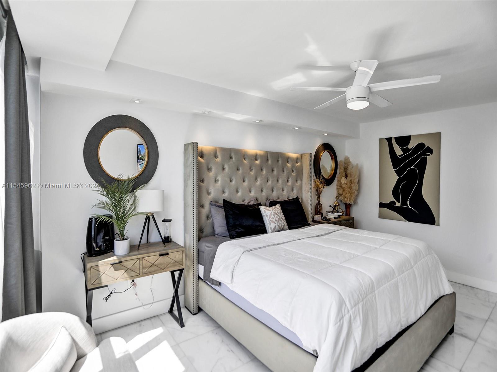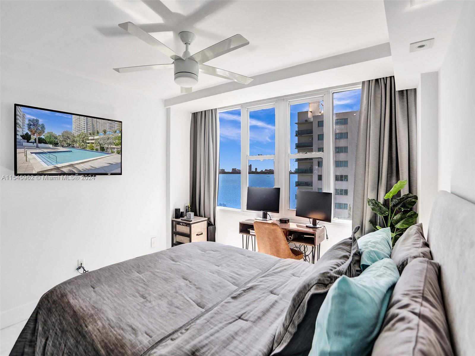 This stunning home is a rare gem and won't remain available long! It can be sold furnished or unfurnished and boasts a spectacular bay view enhanced by modern contemporary decor. It is ideal for singles, families, and investors alike (Available for immediate short-term rentals). It also features a remodeled kitchen w/Quartz countertop, custom cabinetry, marble floors, custom lighting & spacious closets (Walk-in Closet in the Primary Bedroom). Both bathrooms have wall-to-wall marble tile flooring & Quartz countertops. The Community has a security guard, a large swimming pool, and a newly renovated gym. The location is unbeatable, just minutes from the beach, shopping, and restaurants. Commuting is a breeze, with downtown Miami, South Beach, and Bal Harbour all just 15 minutes away.