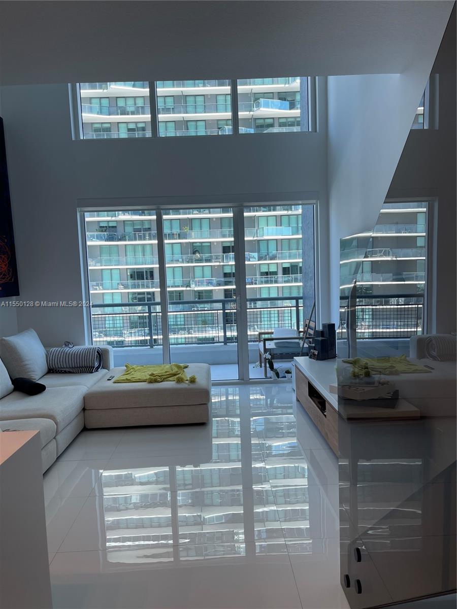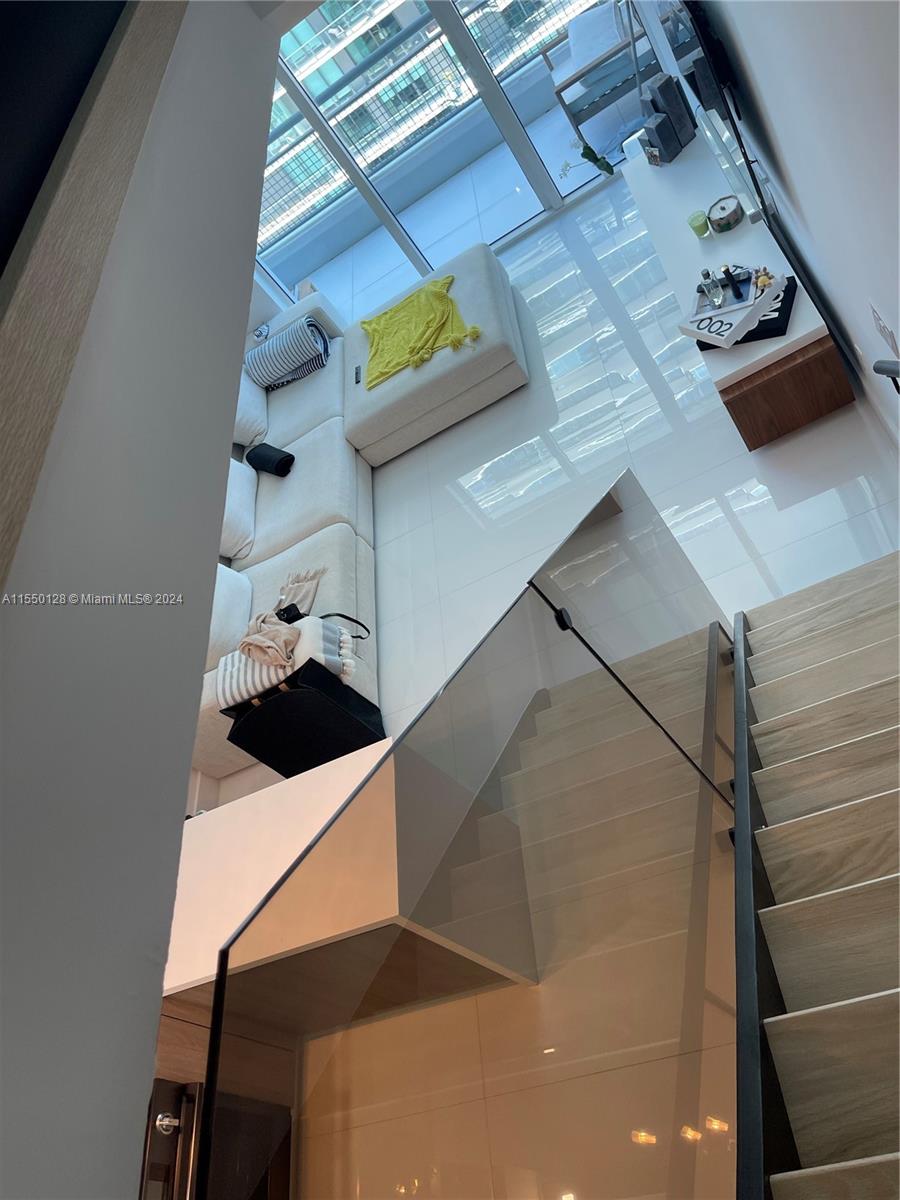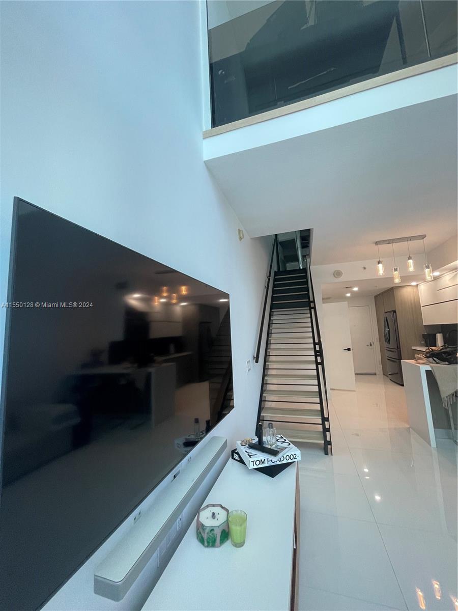 Unique apartment totally remodeled from ceiling to floors just recently. All rooms knocked down and redone with quality materials and good taste. White ceramic tiles and new top of the line appliances, large brand new washer and dryer. Stair case was redone with smoke glass handheld and same smoke glass all around master bedroom which was extended for better size. Master bathroom was completely redone with stone wall and rain shower. All curtains and blackout are open and close with remote control. Best purchase in the building for sure.