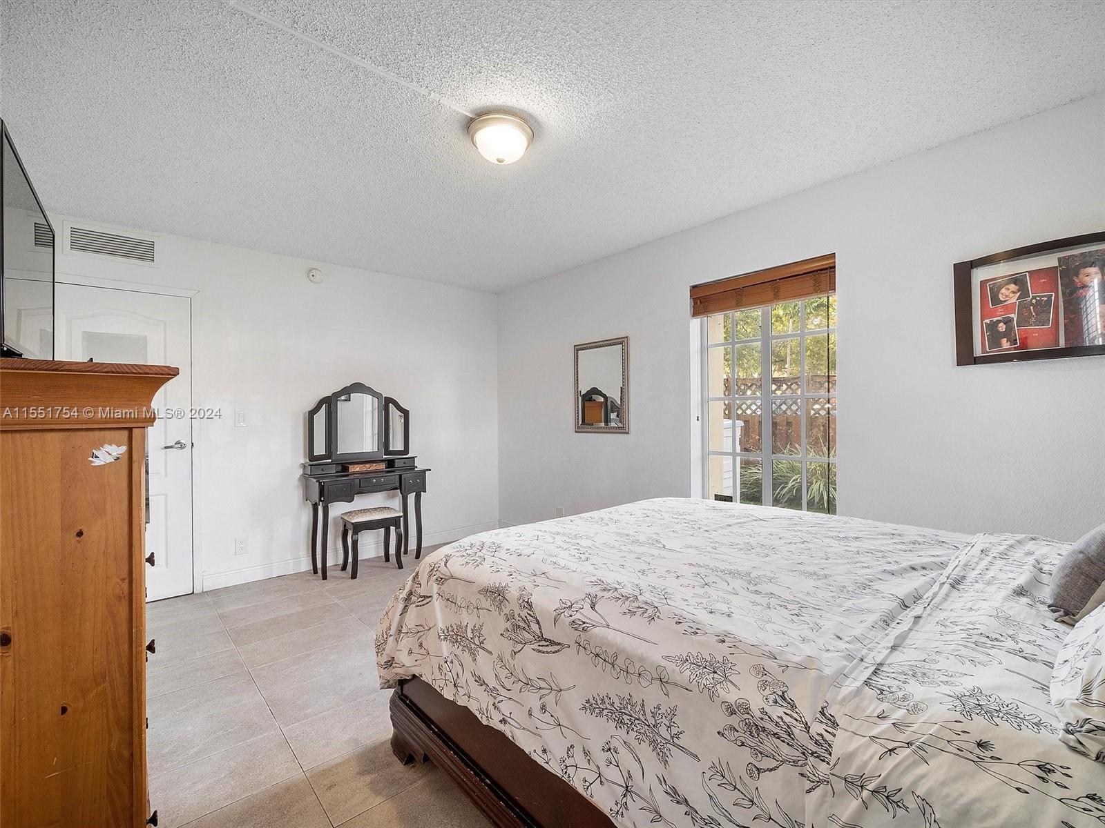 Highly desired corner unit featuring a PRIVATE BACKYARD. This spacious 2-bedroom, 2-bathroom condo offers an oversized yard for outdoor enjoyment. Upgraded kitchen with marble countertops and stainless steel appliances. Ceramic tiled floors throughout. The spacious master bedroom features modern bathrooms. Additional features include an in-unit washer and dryer, walk-in closets, and more. The community is exceptional, offering 3 pools, tennis courts, clubhouse, and gym. Conveniently situated in Doral, close to the new Doral Downtown Development, top-rated schools within walking distance, and easy access to the Palmetto Expressway, hospitals, banks, and shopping facilities.