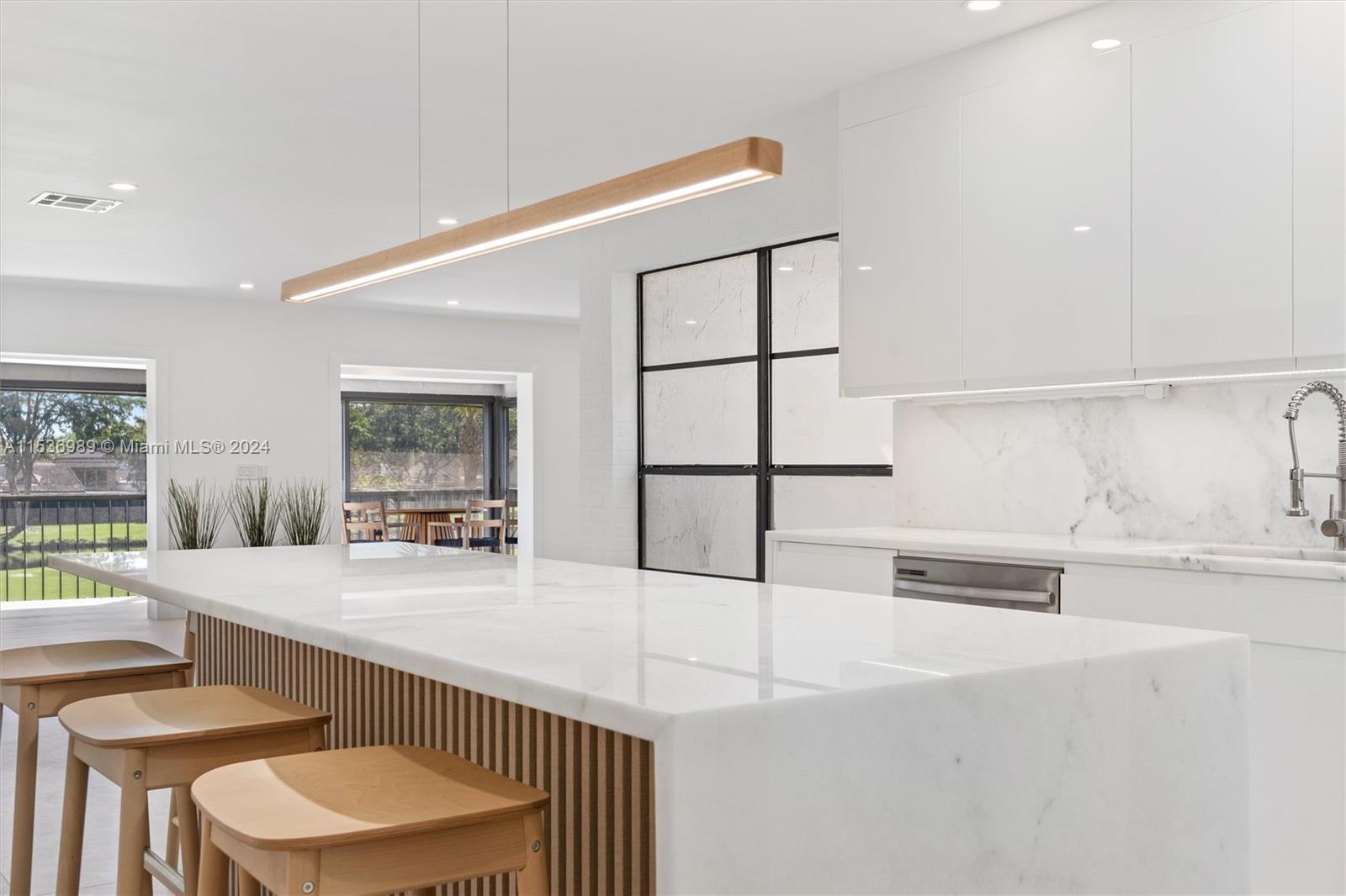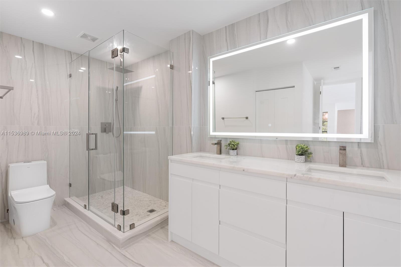 1810 SQFT of elegance! A/C balcony transformed into additional living space with custom ceilings, lighting, and a view like none other. Fully and professionally redesigned and renovated largest model condo overlooking lake and golf course in Boca Lago. 48x48 Brazilian porcelain tile floors, waterfall quartz countertops, backsplash and Island. Brand new appliances with cutting edge technology washer and dryer. Higher ceilings and oversized doors give this home a huge feel and look! LED and accent lighting throughout. Simply the finest unit available in the community. Boca Lago is a 55+ community with social activities years round. A golf and country club membership is available but NOT required.