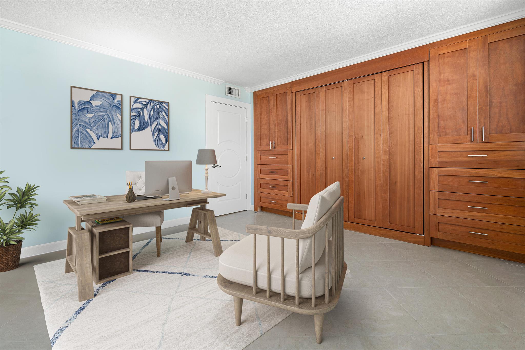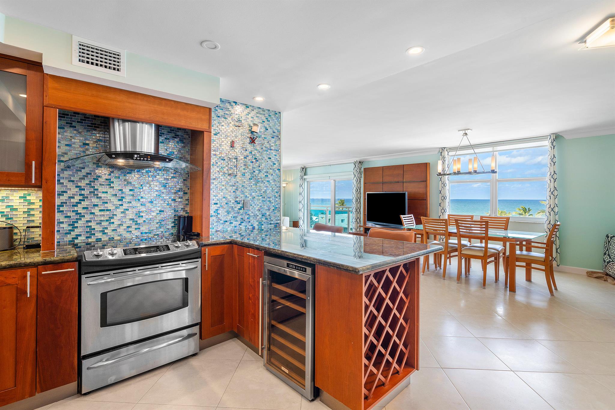 Discover the epitome of coastal luxury living in the heart of Hollywood, Florida where the sea breeze & sunsets beckon you home. This move-in ready 2-bedroom, 2-bathroom condo offers the perfect blend of comfort and elegance for those seeking a vacation home with all the amenities of a permanent residence. As you enter the condo, the expansive windows frame the breathtaking views of the ocean from the open concept living of your kitchen, dining area and family room. The wrap-around balcony allows for views of both the intracoastal w/the iconic Hard Rock Casino & the ocean.The custom Scandinavian inspired kitchen with cherry wood cabinets, SS appliances, wine fridge & gorgeous granite countertops with green/blue undertones & glass backsplash add a touch of warmth & sophistication.