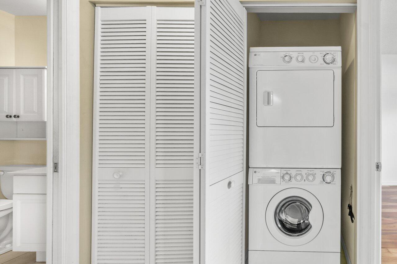 Introducing residence 26-205 nestled in Boca Bayou's Caribbean enclave! Built in 2002, this property boasts COMPLETE IMPACT GLASS and soaring 11' CEILINGS. The master bedroom offers ample storage with a walk-in closet and wall-to-wall closet complete with a built-in system for his and her. The guest room features a spacious walk-in closet as well. Relax on the patio with serene garden and pool views, just steps away from one of the five community pools. Assigned parking conveniently nearby. This gated community offers clubhouse, tennis, and is minutes from the beach, Mizner Park, and Royal Palm. Association fee covers building insurance, water, cable with HBO's, 24-hour manned gated security.