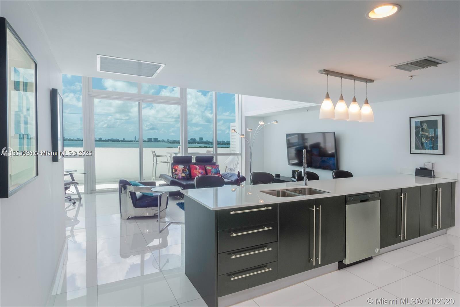EDGEWATER Water view, experience luxury living in this fully furnished 1-bedroom, 1-bathroom unit with breathtaking bay views in Edgewater. This meticulously updated unit features a spacious balcony and terrace, high ceilings, stainless steel appliances, automatic blinds, and a walk-in closet. Enjoy the convenience of high-impact, floor-to-ceiling windows, along with one parking space and free guest parking. Live at the heart of one of the world's most vibrant cities and indulge in an unparalleled lifestyle with resort-style amenities, including a fitness center, infinity-edge pool, steam room, sauna, billiard room, and 24-hour concierge service. Centrally located within walking distance to Whole Foods Market, and dining options. Easy access to downtown, Wynwood, the Design District