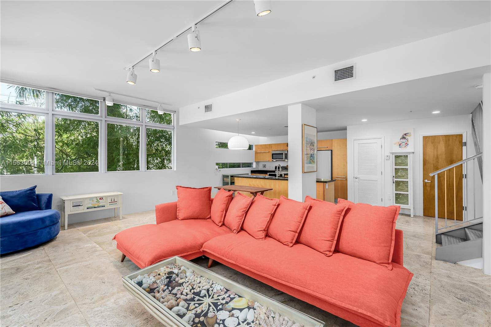 Step from the street straight into serenity! An oasis drenched in natural light awaits as you set foot through the private entrance of residence 205, the exclusive SW corner 2BD 2.5BA 1345SF unit at SoBe Bay. Designed by renowned architect Chad Oppenheim, this ultra-boutique & modern building has only 9 units total and is nestled in prime South Beach location steps from it all. Residence 205 is a unique townhouse-meets-loft style unit with high ceilings, impact glass throughout and three private, South-facing balconies - the first accessible from the living room, the second from both bedrooms and a third upper balcony/roof top terrace. Truly one-of-a-kind, 205 has natural stone flooring throughout, W/D in-unit & two highly coveted, assigned parking spaces in the secure & covered garage.