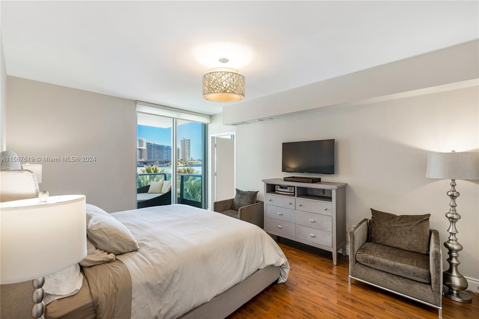 Indulge in waterfront luxury at Jade Residences, offering panoramic bay and city views from the expansive balcony. This modern 1-bed + den, 2-bath unit features floor-to-ceiling windows, hardwood & marble floors, high ceilings, and an Italian kitchen with top-of-the-line appliances. Enjoy the oversized bathroom with walk-in shower and spa tub. Amenities include concierge, fitness center, spa, infinity pool, business center, kids' room, and more. With 2 parking spaces, and easy access to shops, fine restaurants, and entertainment, this is waterfront living at its finest!