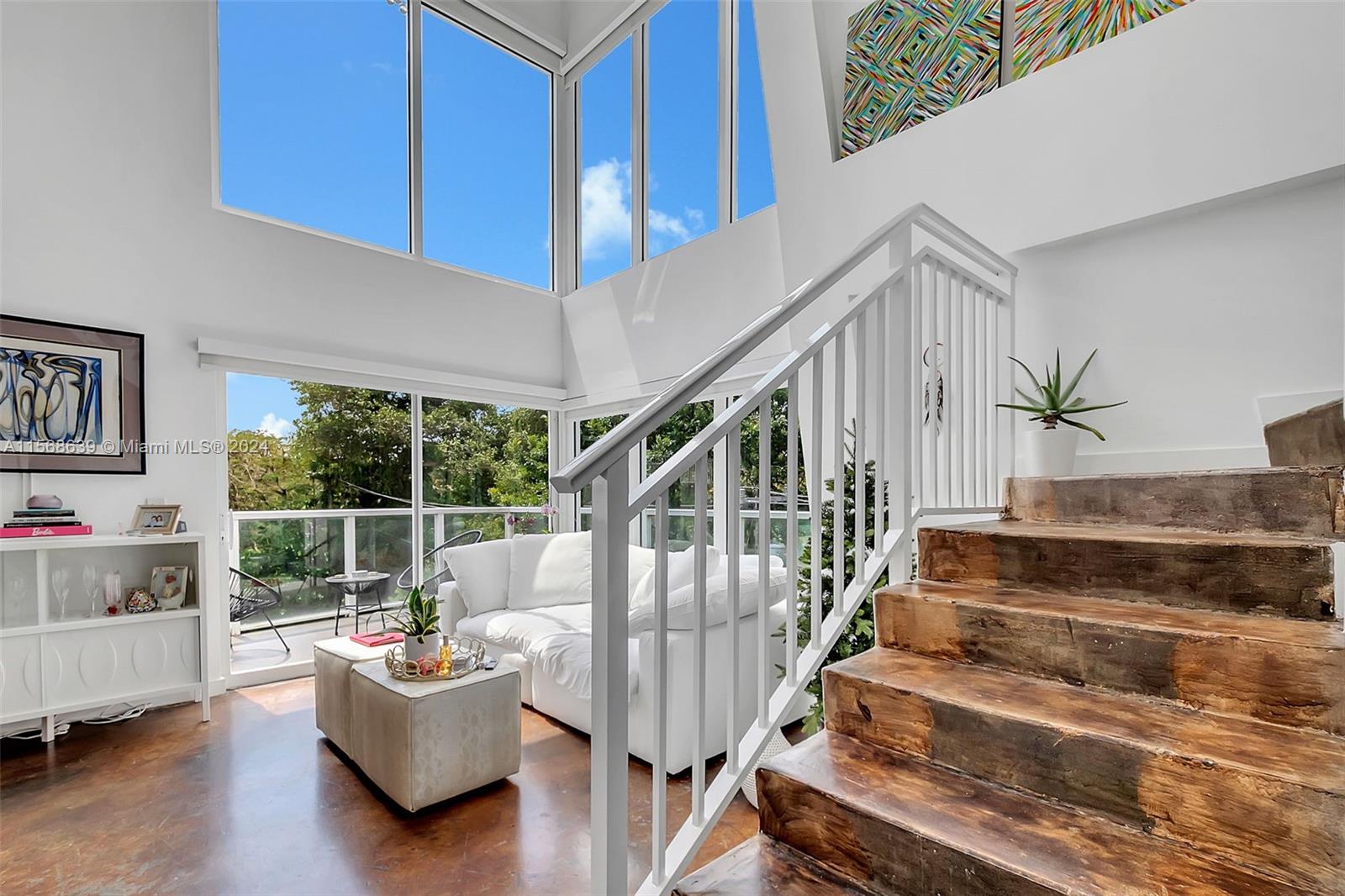 One of a kind! A boutique loft style condo of only 24 units, set in an exclusive zone of Brickell. This beautiful corner loft with 22 ft windows and double high ceilings provides two levels of relaxed living. Shaded by neighboring tree canopy, this condo loft offers privacy from Brickell Ave whilst providing gorgeous natural light w two open balconies. One balcony wraps around the lower floor & the additional balcony is on the second floor w access from the bedroom. A two-story 1 bed/1.5 bath property offering a fully equipped kitchen with Italian cabinetry, stove top, full sized oven, fridge/freezer w/water & ice, dishwasher, microwave & garbage disposal, washer & dryer in unit. The loft has 1 assigned secure covered parking space. Fantastic opportunity to live best location in Brickell!