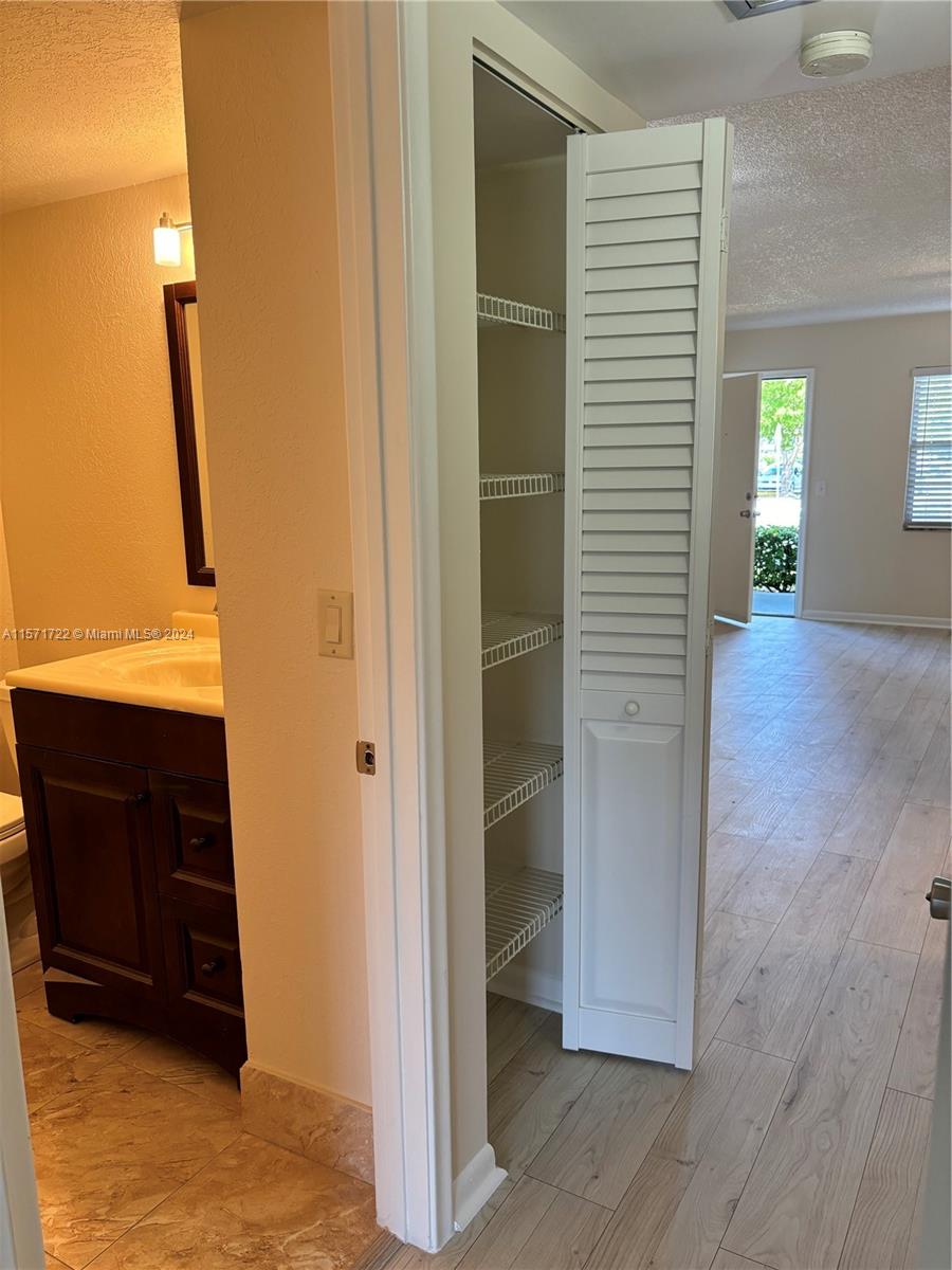 Rarely available First floor unit for sale. Condo has a stunning lake and golf view. This condo is a 1 bedroom with 1 & 1/2 bath. Unit has been updated with Brand new A/C & water heater and brand-new laminate floors throughout. Kitchen has wood cabinets and granite countertops with SS appliances. Both baths have been renovated. Plus, a fresh coat of paint. HOA fees include, cable, Wifi- and hot water. Century Village is a 55+ community with many amenities, golf, pools, gyms, transportation, entertainment and much more. Laundry room only steps away. Unit is investor friendly, can lease right away. HOA requires a 650+ credit score.