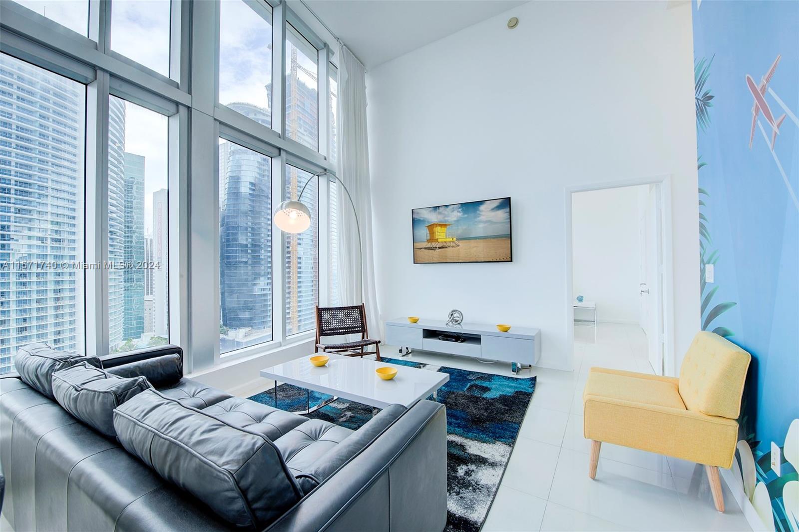 Rare 2/2 NE Corner Unit at Icon Brickell with 16ft. Double-height ceilings, Bay, and Ocean Views. Short-Term Rentals Permitted. Enjoy stunning views of Biscayne Bay, Miami River & Downtown skyline from floor-to-ceiling windows. Move-in ready. Ideal Miami vacation rental investment generating well over $100k Airbnb income. Top-notch management. Italian kitchen, Subzero Wolf Bosch appliances. Designed by Philippe Starck. World-class amenities: Heated infinity pool, movie theater, lush landscaping. Fine dining with Cipriani & LaVeinte in the building.