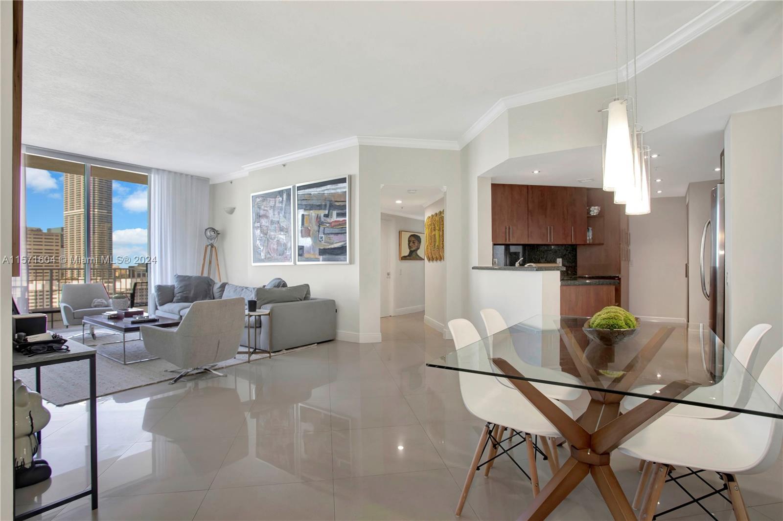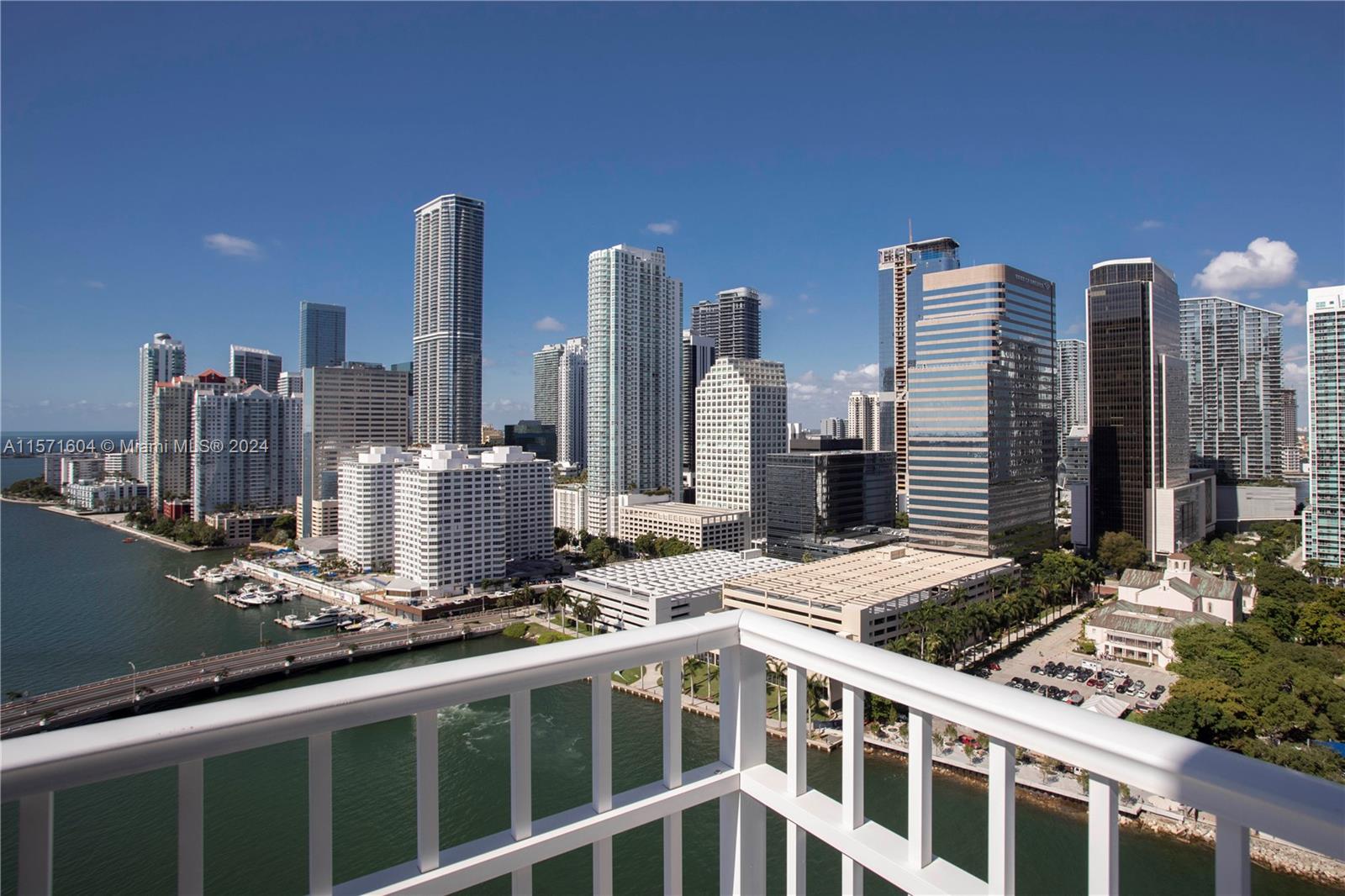 Spectacular Penthouse at Courvoisier Brickell Key. This spacious 3 bed/2.5 bath unit laid out over 1,573 SqFt offers wonderful water, bay & city views. 10-foot ceilings, porcelain flooring throughout, ample kitchen w/ granite countertop and stainless steel appliances, large walk-in closets, 2 parking spaces, 2 storage units. Great building amenities incl heated pool and jacuzzi, 2 story fitness center, racquet / squash court, billiards, media and conference room, shops & restaurants.