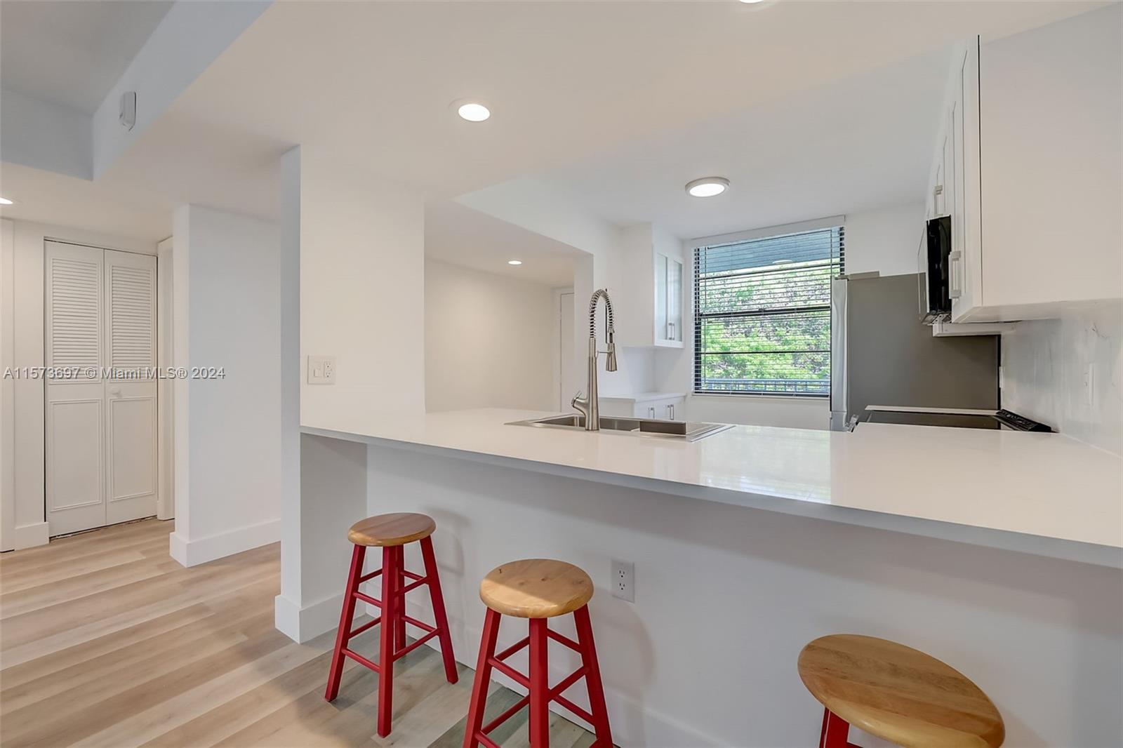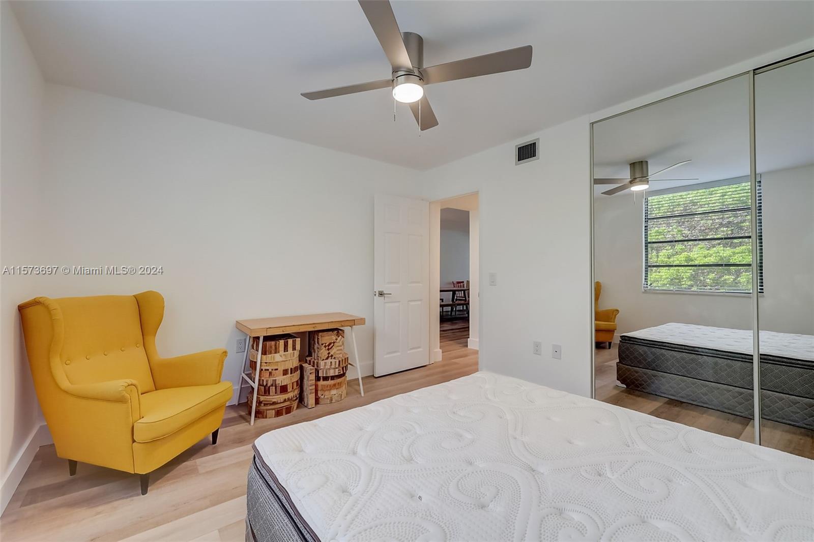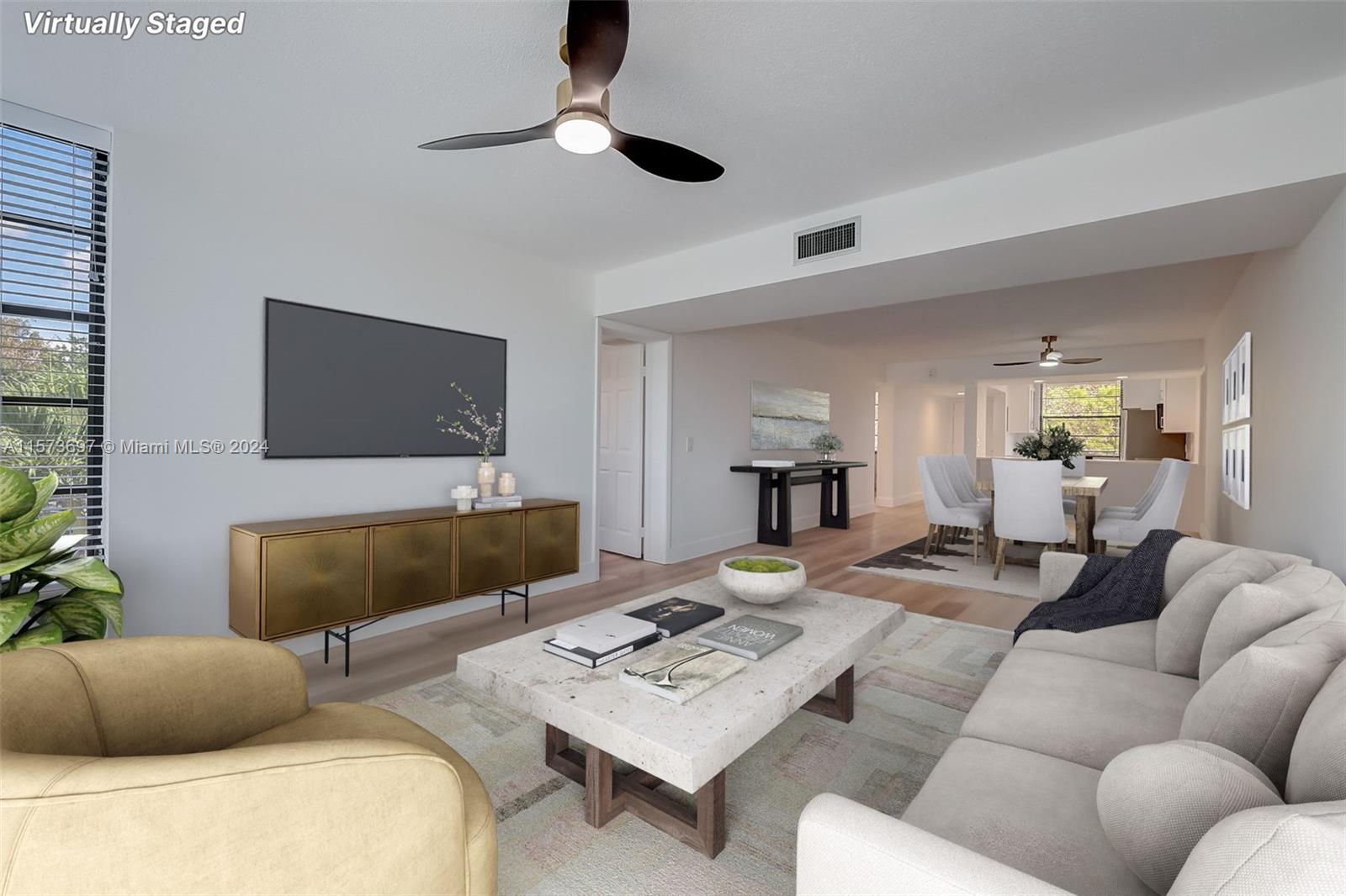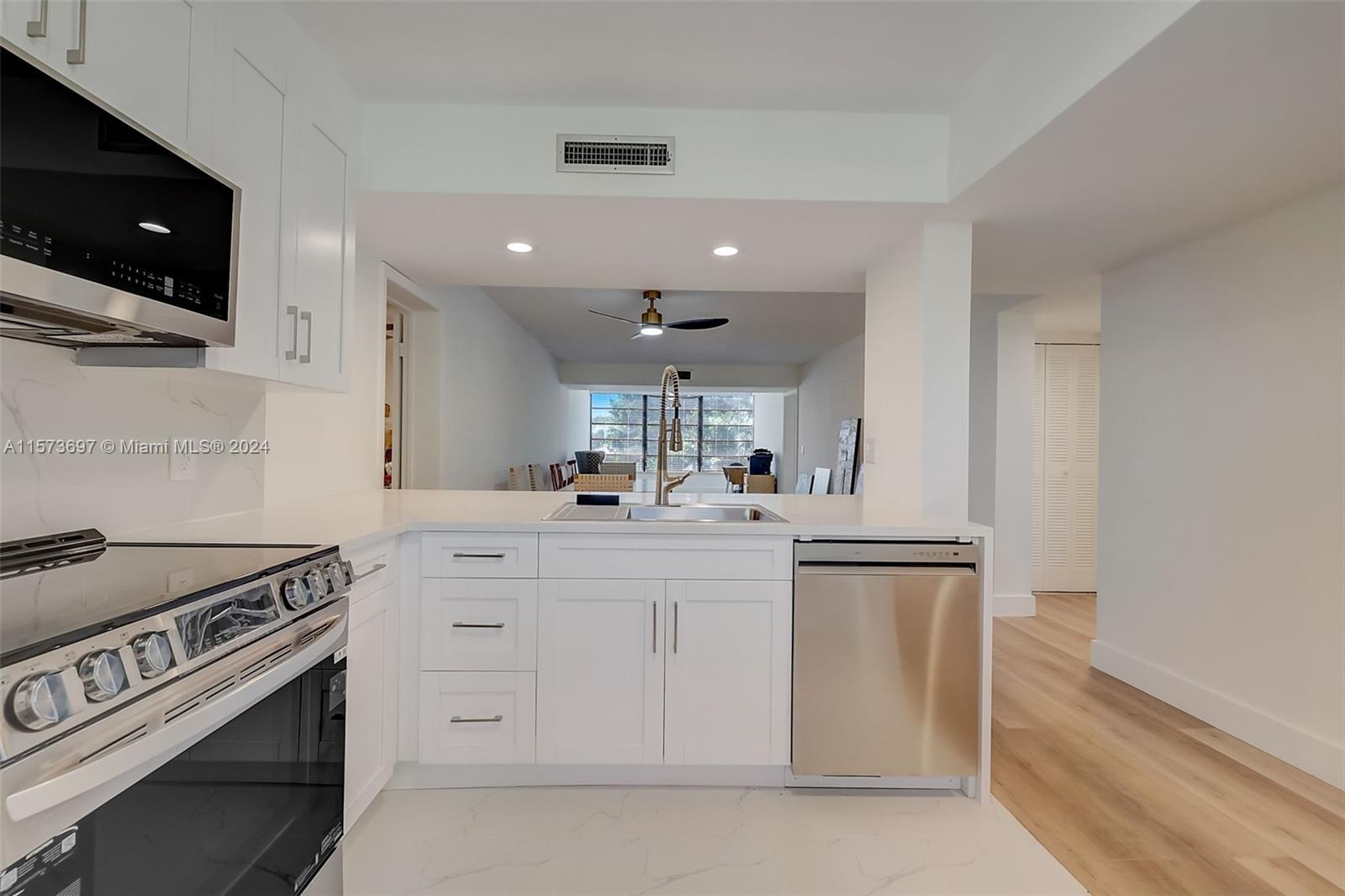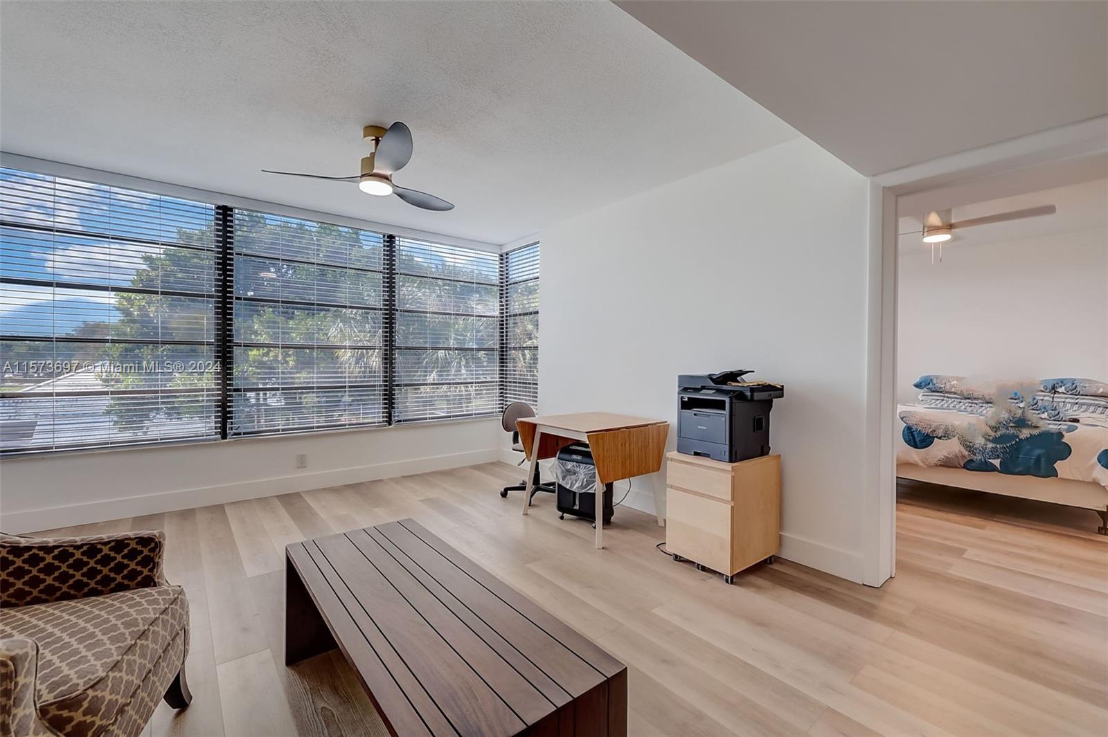 Captivating corner unit fully remodeled, 2 bedrooms, 2 bathrooms, and an array of upgrades. As you step inside, be embraced by the sleek wood flooring, seamlessly uniting the open living space. The upgraded kitchen with granite counter, brand-new stainless steel appliances, and modern cabinetry. bathrooms have been beautifully renovated with frameless glass doors, upgraded fixtures. New A/C unit, New Washer and Dryer. Serene garden and pool views from the living room, offering a tranquil retreat within your own home. Additionally, there is a bonus room, perfect for a home office, guest room, or play area for the little ones. This unit has impeccable attention to detail and quality throughout. A MUST SEE!!