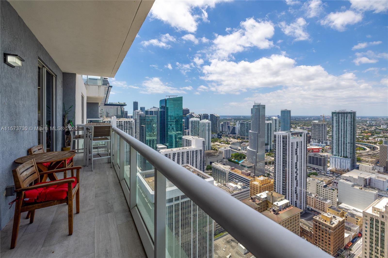 1 Bed 1 Bath + Den Penthouse Condo with Unobstructed Breathtaking City Views. Floor to Ceiling Impact Windows/Sliders. Open Balcony. Larger White Porcelain Tiles in Living Areas & Bedroom; Grey Wood Like Tiles in Bathroom & Open Glass Balcony. Kitchen Aid Stainless Steel Appliances, Dellacasa Italian Style Teak Cabinetry, Granite Counters. Full-Service Building, Resort Style Amenities: Infinity Pool, Cabanas, Day Beds, BBQ, Sauna, Steam Room, Spa, Yoga/Pilates Room, Fitness Center, 24hr Concierge & Security. 1 Assigned Parking Space, 24hr Valet Parking. Ideal Downtown Location. Metro Mover, Performing Arts Center, Bayfront Park, Kaseya .