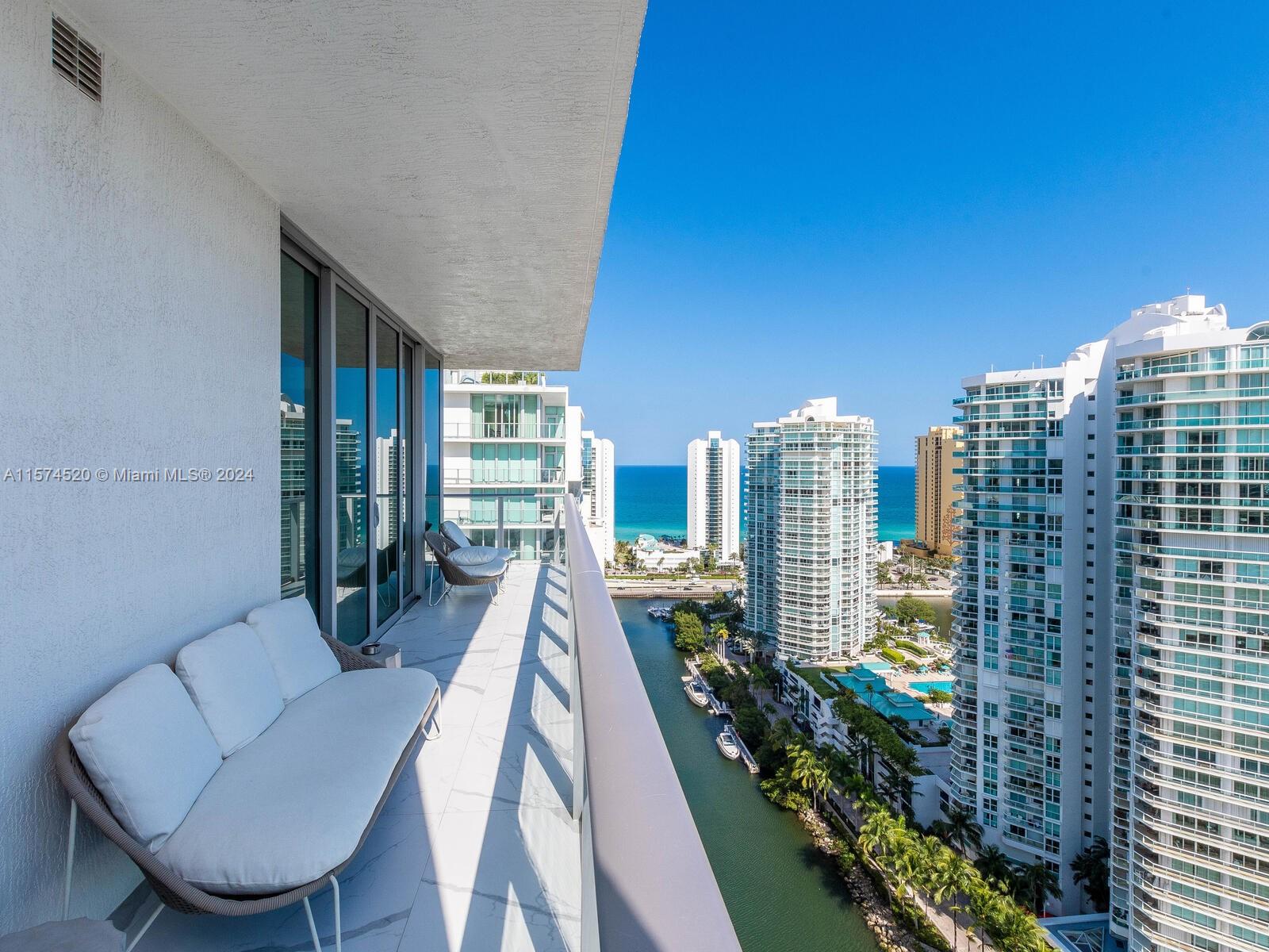 Fantastic furnished unit in Sunny Isles, close to the beach, with 5 stars amenities. Tastefully upgraded 3 bed/3.5 bath, corner unit, high floor and high ceilings, wrap around terrace with stunning panoramic views of Intracoastal, Miami skyline & Ocean. Designed by Steven G with finest furniture and beautiful decor and lots of upgrades. Open floor plan, floor to ceiling Impact glass windows & doors. Gourmet kitchen, quartz Countertops, induction stove, Italian cabinetry, Bosh & Subzero appliances, Italian closest and doors, electric blinds, beautiful porcelain floors. Luxurious amenities:24/7 front desk & Valet, 4 pools, Gym, Spa, Kids Club & Playground, Cinema, Games room, Bistro, Party room. Near the beach, Aventura Mall & Bal Harbor Mall. Awesome Schools.
