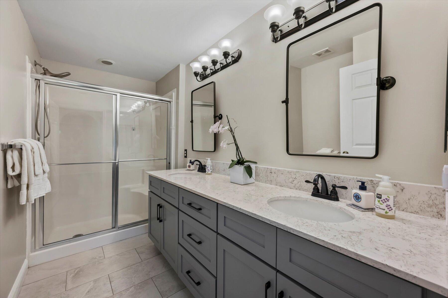 Discover the convenience of low HOA living at 8273 Fresh Creek. Enjoy amenities like a 24/7 manned gate, security patrol, CATV, WiFi, landscaping, irrigation, and roof cleaning. Delight in resort-style features such as a heated pool, spa, picnic area, and playground, with no age restrictions. Step into tranquility and security with serene water views and modern updates. Benefit from impact windows, a Ring doorbell, and security cameras hardwired for peace of mind. Inside, find an updated kitchen and renovated bathrooms, along with easy maintenance throughout. New Air Conditioner (2023) with UV light and smart thermostat, appliances (2022), and hot water heater (2022) enhance comfort. This meticulously maintained sanctuary promises effortless living, curated for both comfort and style.