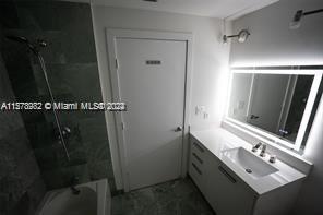 Situated in Miami's vibrant Brickell district, this luxurious two-story loft-style apartment epitomizes urban chic. Upon entry, the hallway leads to an open-concept living space adorned with floor-to-ceiling windows, bathing the interior in natural light. The kitchen boasts quartz countertops and top-of-the-line stainless steel appliances. A convenient half bath and private washer/dryer enhance functionality on the ground floor. Ascend the modern staircase to the loft-style bedroom, where a king-size bed invites relaxation. The en-suite bathroom features a shower and upscale finishes. Outside, a private balcony offers views of the city below. In the heart of Brickell, residents enjoy unparalleled access to dining, shopping, making this apartment a urban sanctuary in Miami.