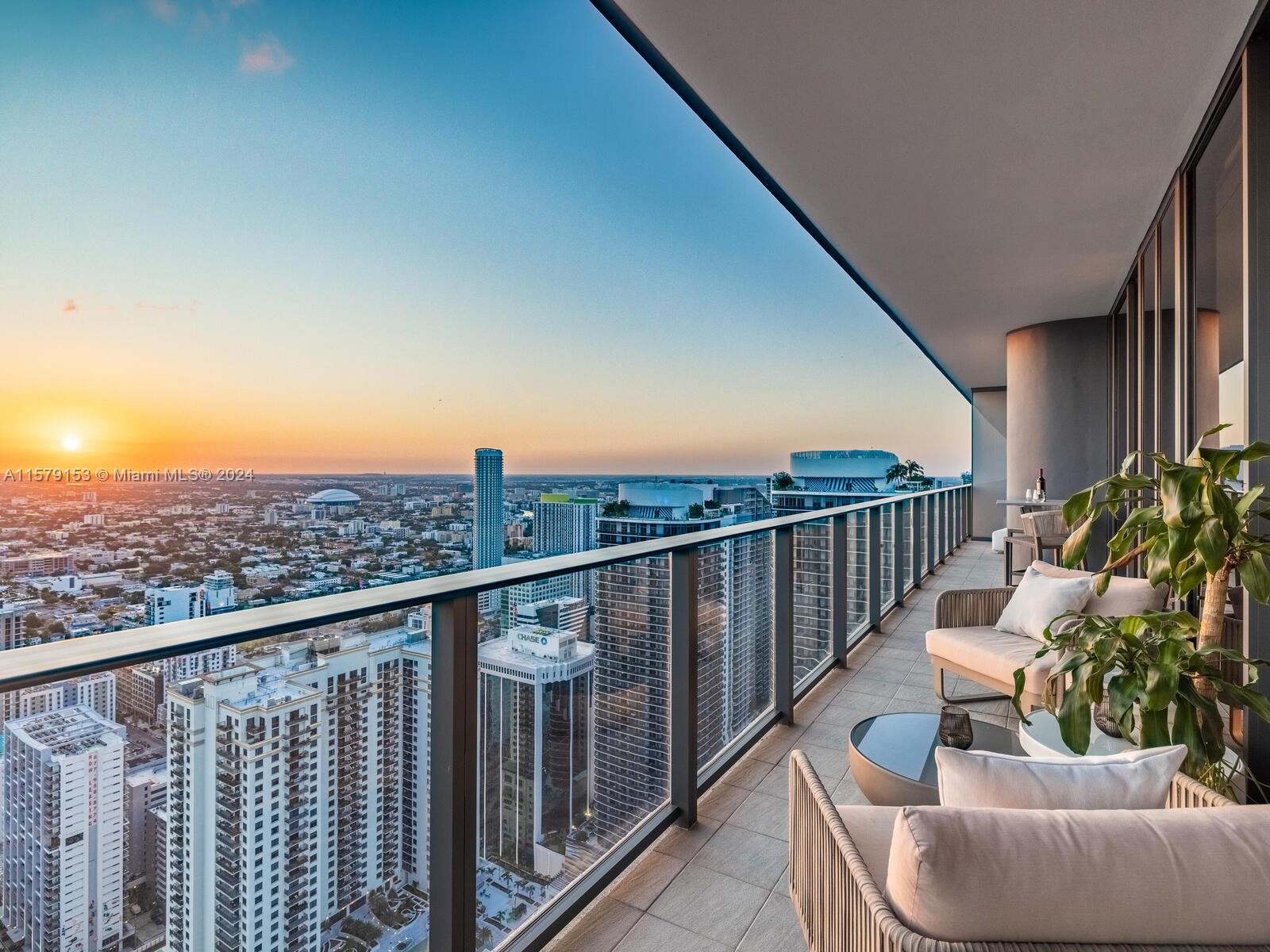 Welcome to The Sunset Penthouse at Brickell Flatiron. This coveted, rare-to-market four-bedroom, four-and-a-half bath, “Penthouse 04 Line” residence includes over 2,600 SF of indoor living space! Experience luxurious Italian finishes throughout with full-wall panoramic views from every room; spacious living and dining; designer gourmet kitchen; gorgeous travertine floors; large main-suite retreat with walk-in shower and tub, plus double walk-in closets; secondary “guest nest” ensuite; bonus den-office area; grand utility room; and a chic guest powder room. Breathtaking, picture-perfect sunsets await on 509 SF of outdoor covered terraces, perfect for entertaining or relaxing. All in a renowned, impeccable building with resort-style amenities and personal concierge in the heart of Brickell.