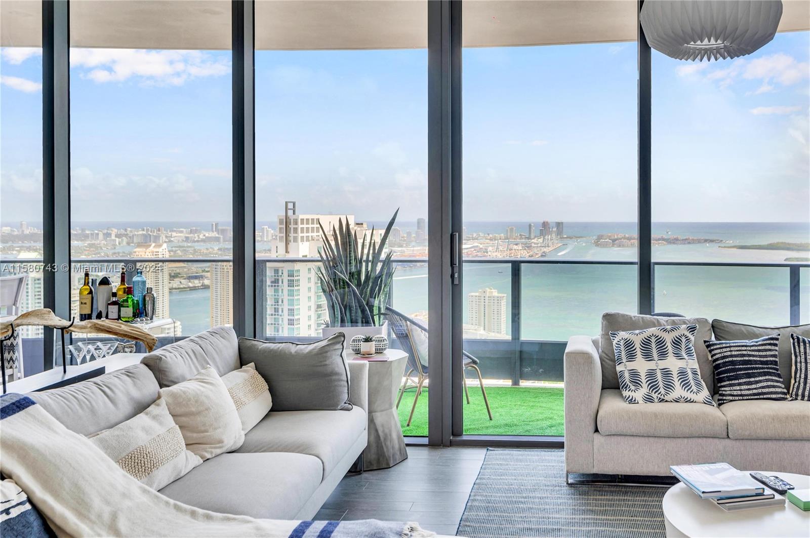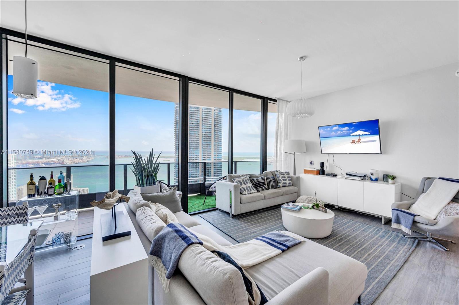 Check out this must-see opportunity! Experience breathtaking views of Miami from the 60th floor in this stunning fully furnished unit. With 3 bedrooms and 2 full baths plus a guest bath, this space offers both luxury and comfort. The kitchen boasts top-of-the-line Miele appliances and a spacious cooking island. enhanced insulation for soundproofing between units, ensuring tranquility amidst the vibrant city. This exclusive residence offers an array of amenities, including a rooftop pool and spa on the 64th floor, complete with steam rooms, saunas, and locker facilities. Stay active in the 6,300-square-foot gym, ea lap pool and children's pool on the 18th floor, a movie theater, billiards room, and electric car charging stations for eco-conscious residents.
