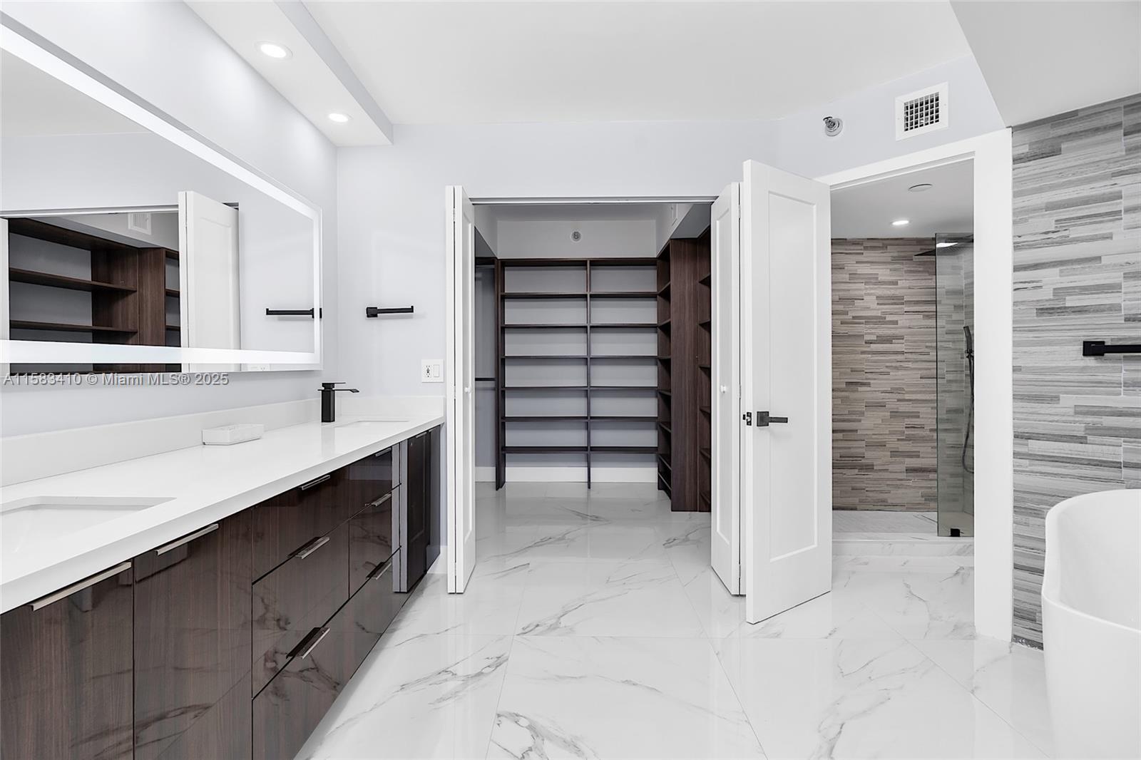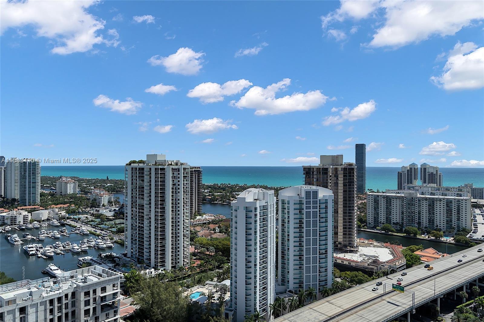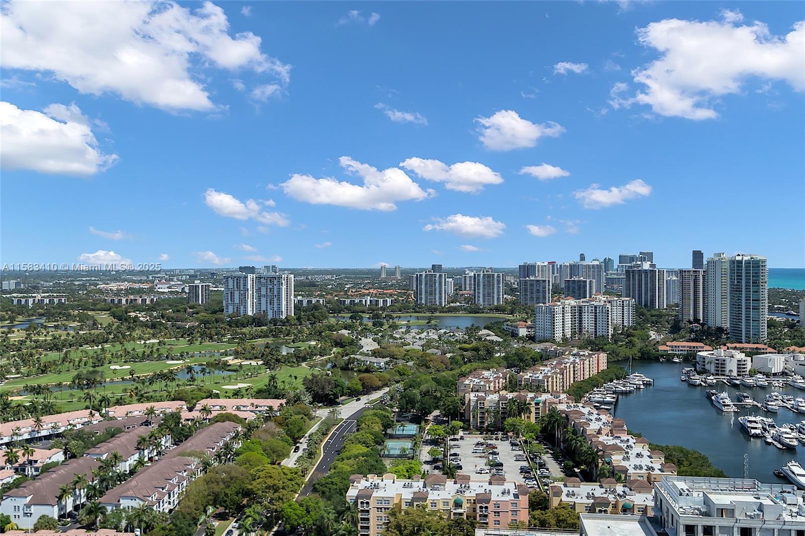 ONE OF A KIND. Completely remodeled 2 beds plus den and 2 full bathrooms.Enjoy the most beautiful and spectacular panoramic views of the ocean,Turnberry Golf course,skyline from this spacious apartment in the prestigious Mystic Pointe.Apartment features an exquisite open kitchen with new stainless steel appliances and wine-cooler. Unit features exquisite bathrooms, separate new washer and dryer in the unit. Entire home has tile throughout. Split floor with extensive wrap-around balcony with breathtaking views and shutter.Full building amenities including: Fitness center, heated pool,library,7 clay tennis courts,2 pickle ball courts,1 basketball court and dog park,mini market, beauty salon and restaurant. Mystic Pointe is a desirable and all-inclusive 24 hours gated community.