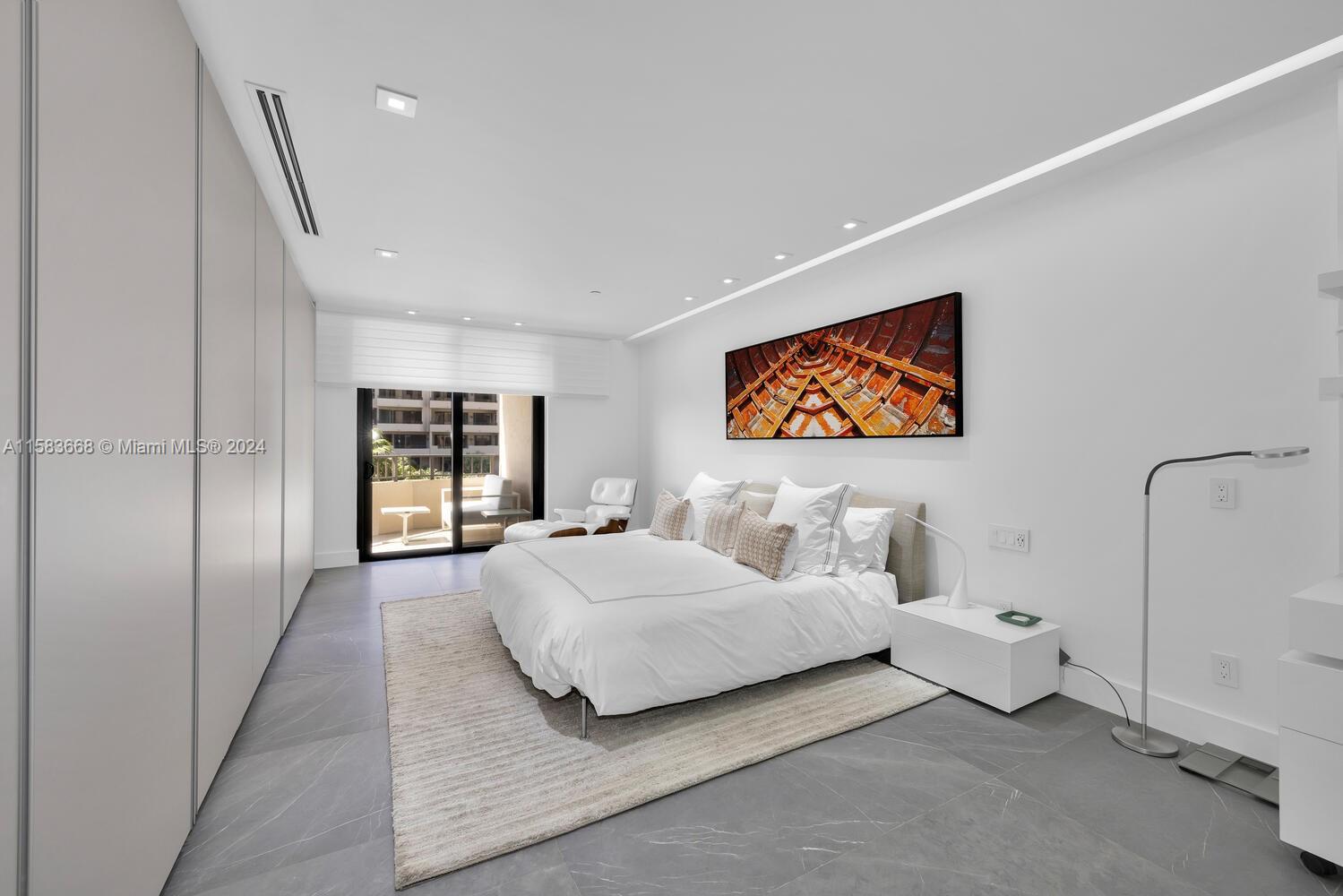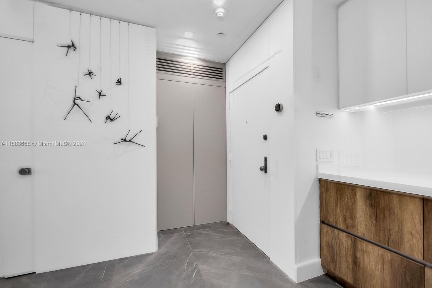 Unparalleled, impressive & completely renovated 2/2.5 unit. 1560 SF. Ingenious use of space like no other unit. Split bedroom plan. Large laundry/pantry/office. HIGH IMPACT WINDOWS & DOORS. Unique and sleek interior design features raised ceilings, custom sliding door system throughout w/internal auto lighting, MiaCucina designed kitchen w/Wolf, SubZero and Asko appliances. 48 bottle Wolf wine cooler. Linear A/C diffusers. Porcelain flooring provides a seamless transition to the extended balcony. Be the first to preview this spectacular unit! 2 covered parking spaces.