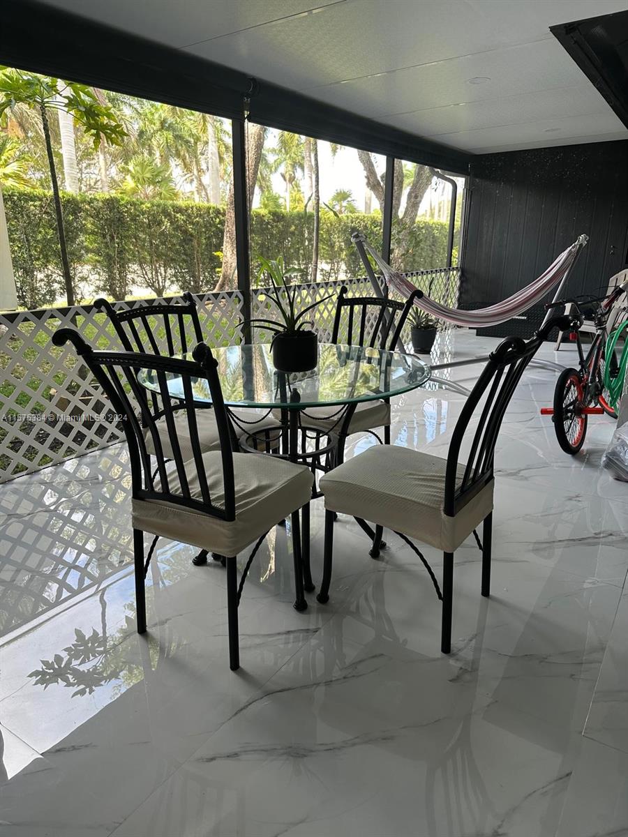 Beautiful Villa. Completely renovated. 2 bedrooms and a space we designed as a study. 2 bathrooms. 2 parking spaces and capacity for more vehicles. IMPORTANT: New roof (2021), new terrace roof, new air conditioning and water heater, high impact windows and door, high doors, high impact rolling doors. The kitchen has granite countertops, and the bathrooms have granite countertops, stainless steel appliances, and laminate floors. New smart washer and dryer, new dishwasher. Private covered patio with ceramic floor, electric blinds, and electric awnings. Ample storage.