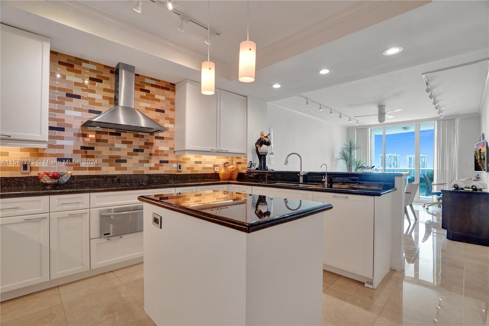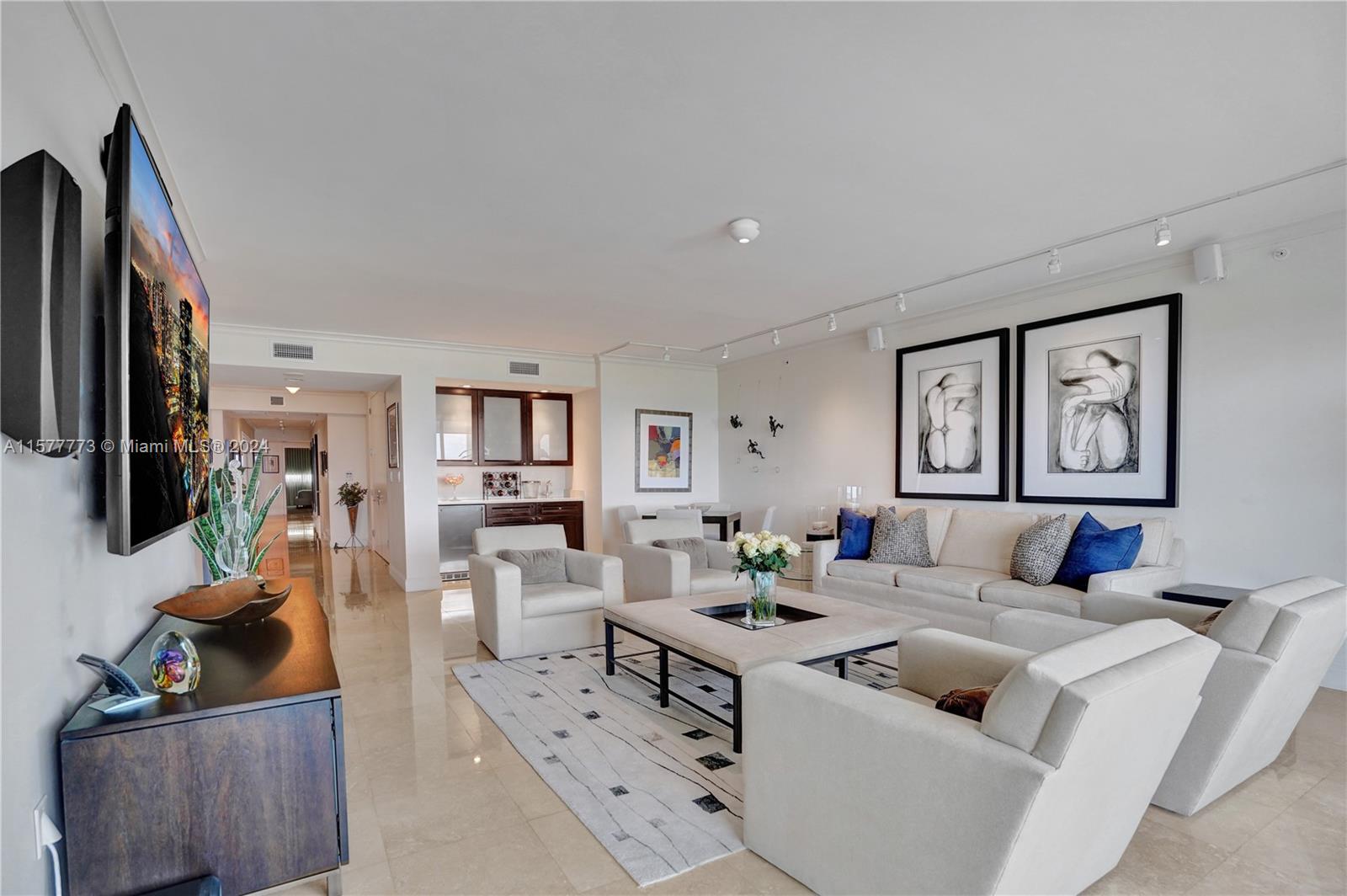 Elegant, bright and light filled, this magnificent unit has direct unobstructed ocean views from the east and Turnberry golf course from the west balconies. Used only as a second home. Two bedrooms plus den, 2 bedroom plus den, third bedroom or office, 3 full baths. Marble floors. Huge walk-in closets. Large laundry room. Private elevator. Infinity pool, movie theatre, BBQ area, tennis courts, on site restaurant that delivers, Internet cafe, kids’ room. Hamptons South is in the heart of Aventura, just minutes to the beach, 3.5-mile walking and biking trail, restaurants, shopping, major highways and excellent schools!