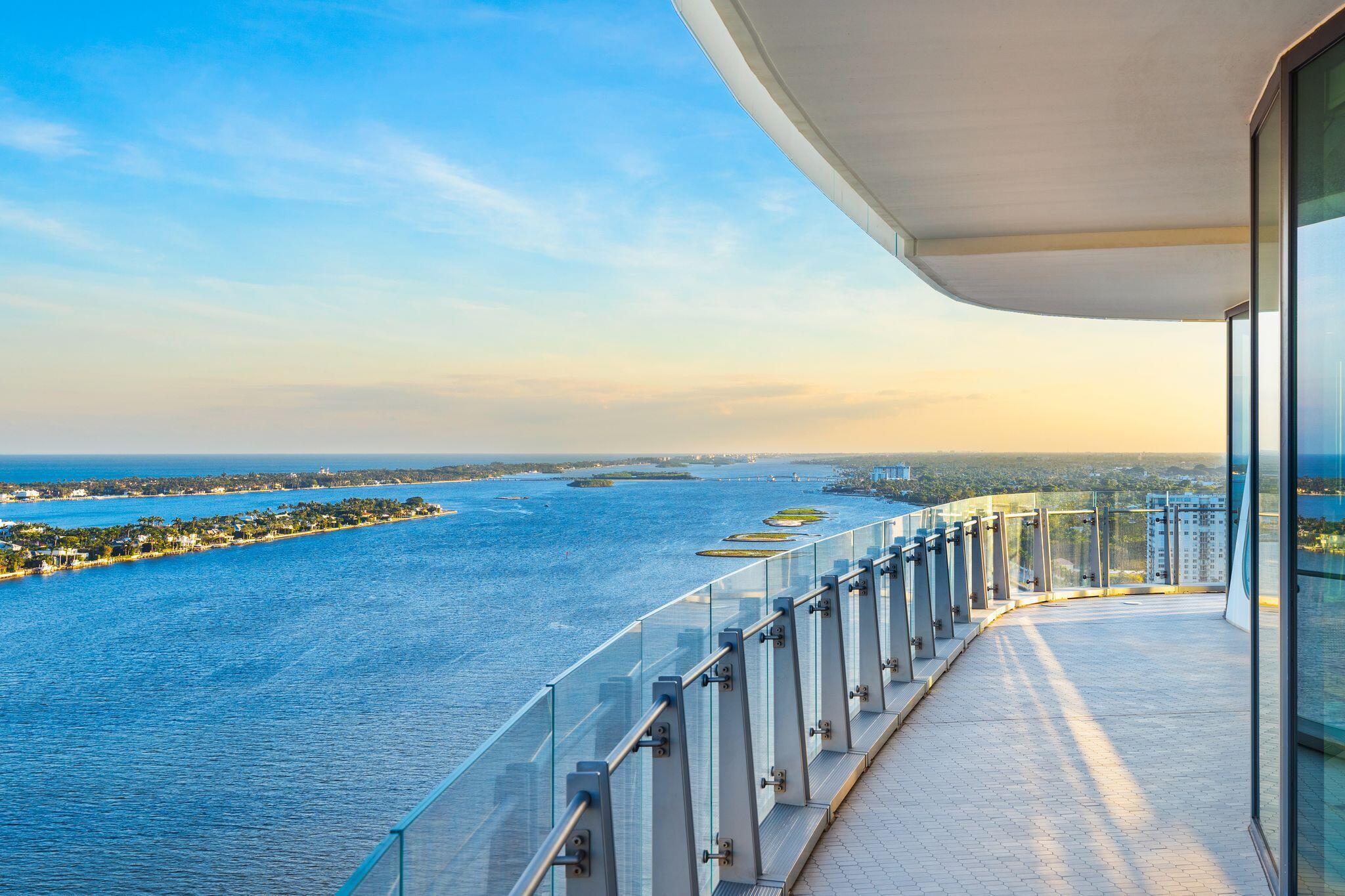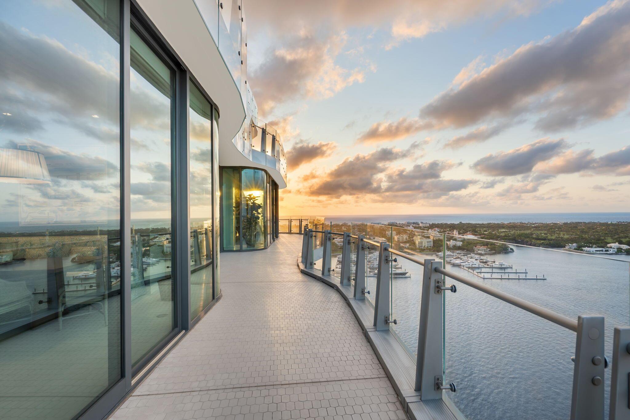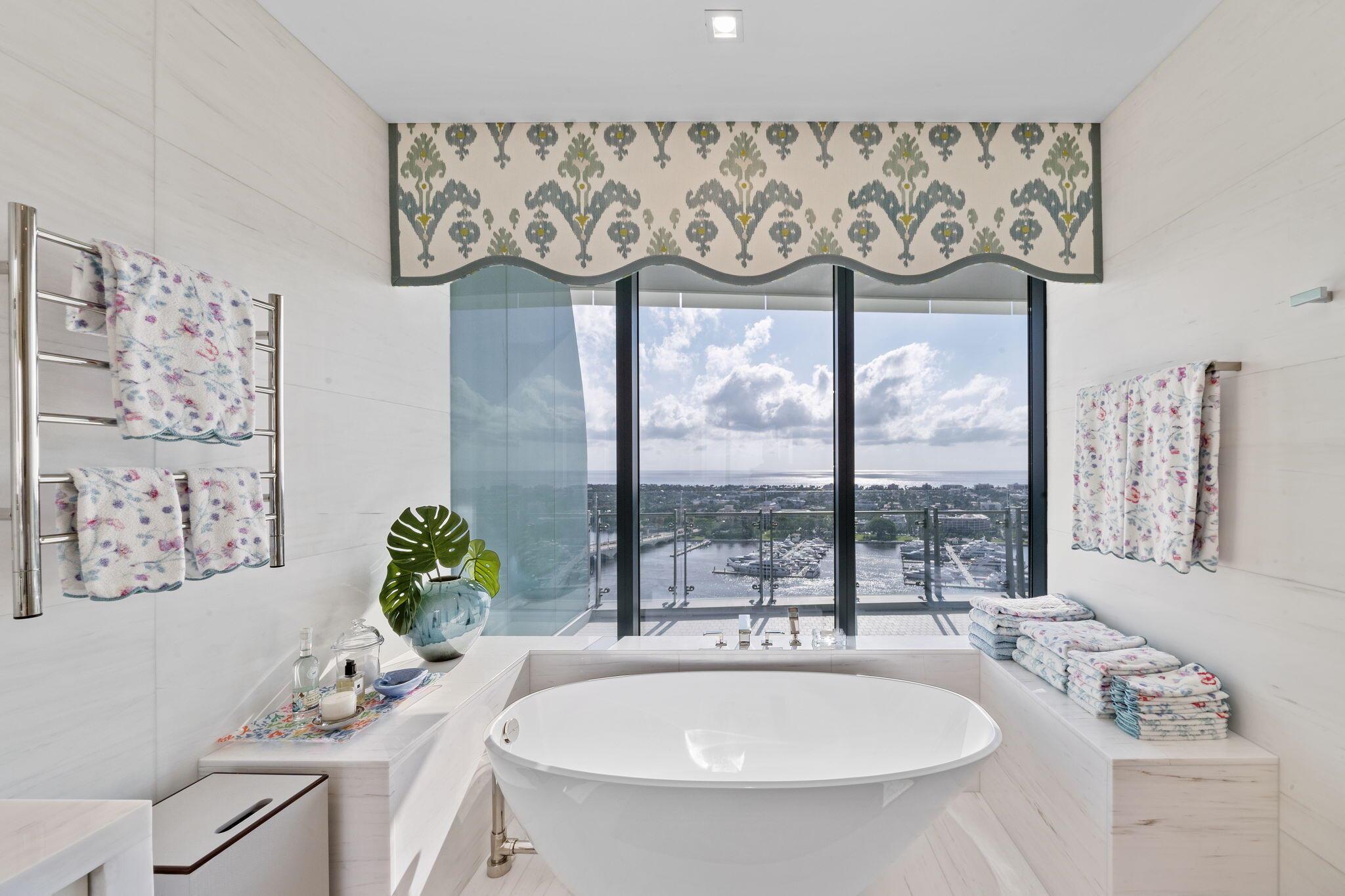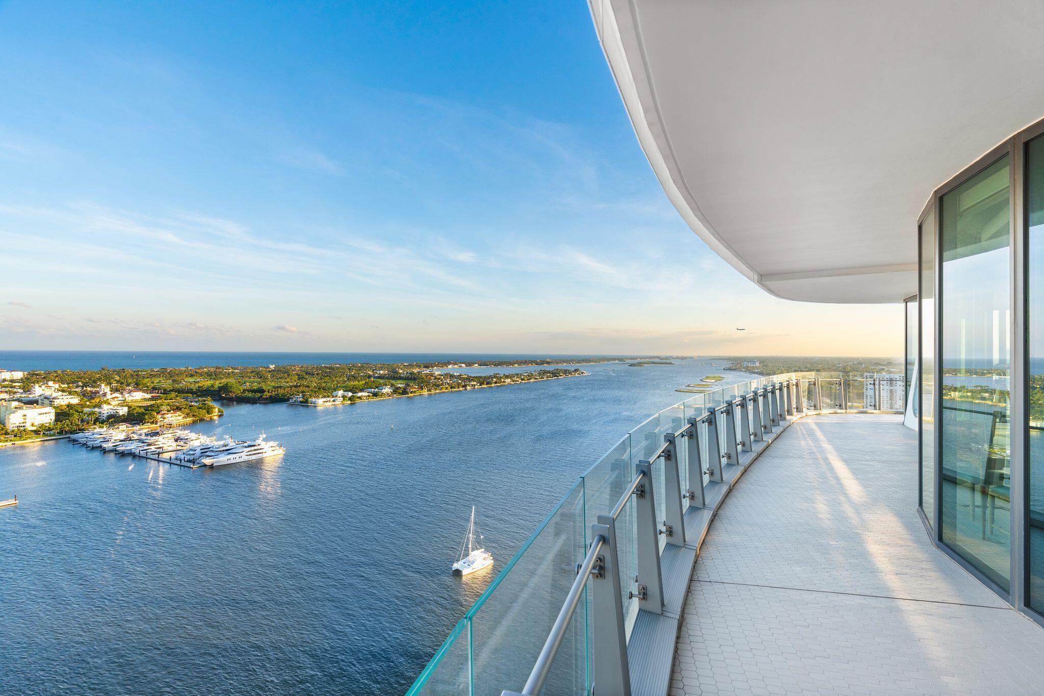There is luxury and then there is unit 2203 at the Bristol. The attention to detail is unmatched- from the interior-designer owner's custom floor plan to elegant wallcoverings, top quality light fixtures and honed Italian marble floors. Even the closets are leather-lined beauties from Ornare. From your 22fl perch, Palm Beach island lies at your feet, with long views of the rolling Atlantic, the Intracoastal stretching away to the south and Kodachrome-ready sunsets to the west. With 7,100 of indoor and outdoor sqft wrapping around the entire south end of the building, the layout features a primary suite with his/her baths and closets and a sitting room/office. A spectacular fitness center, lap pool, his and hers spas and a concierge are just some of the Bristol's over-the-top amenities